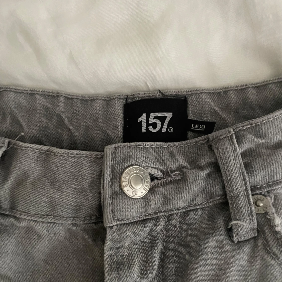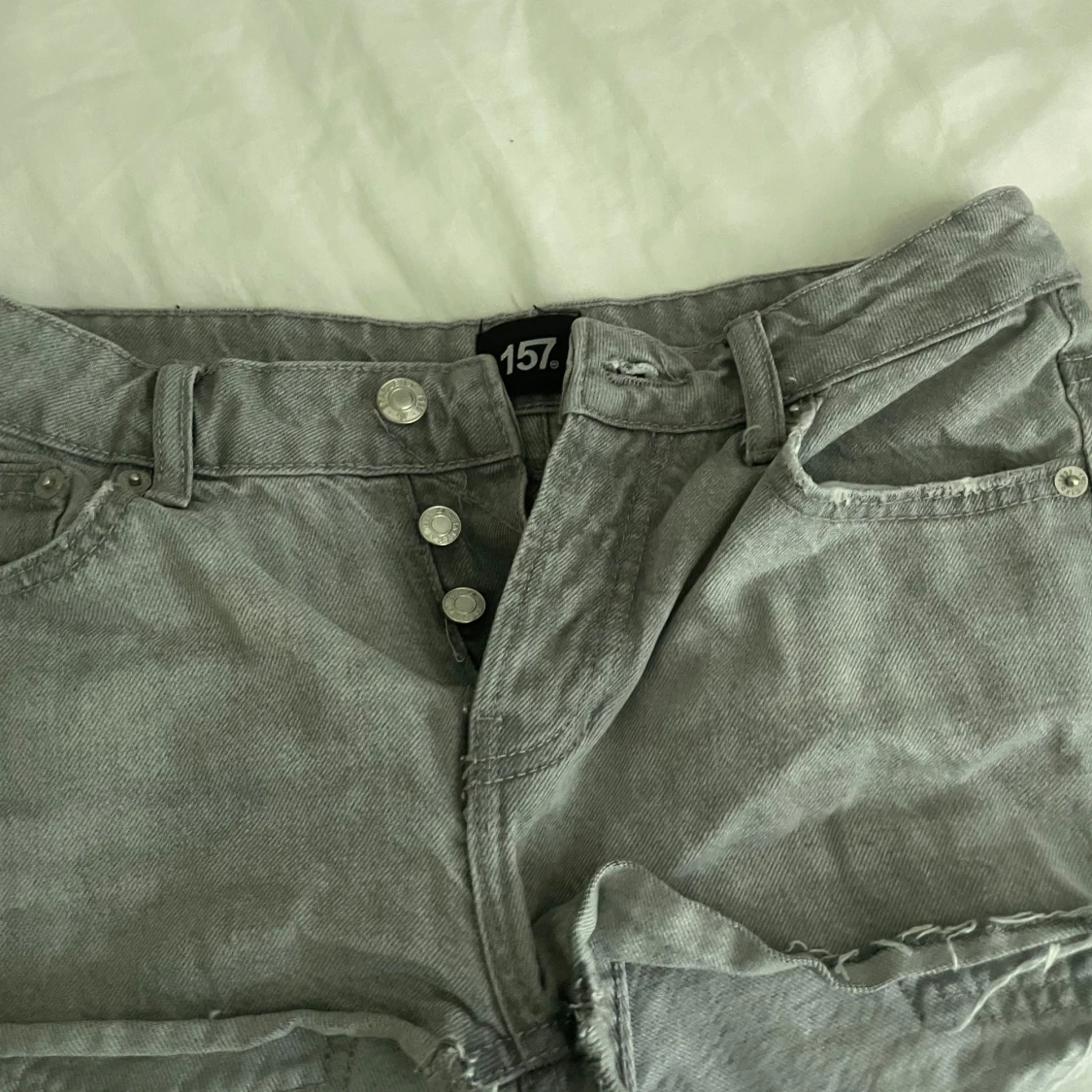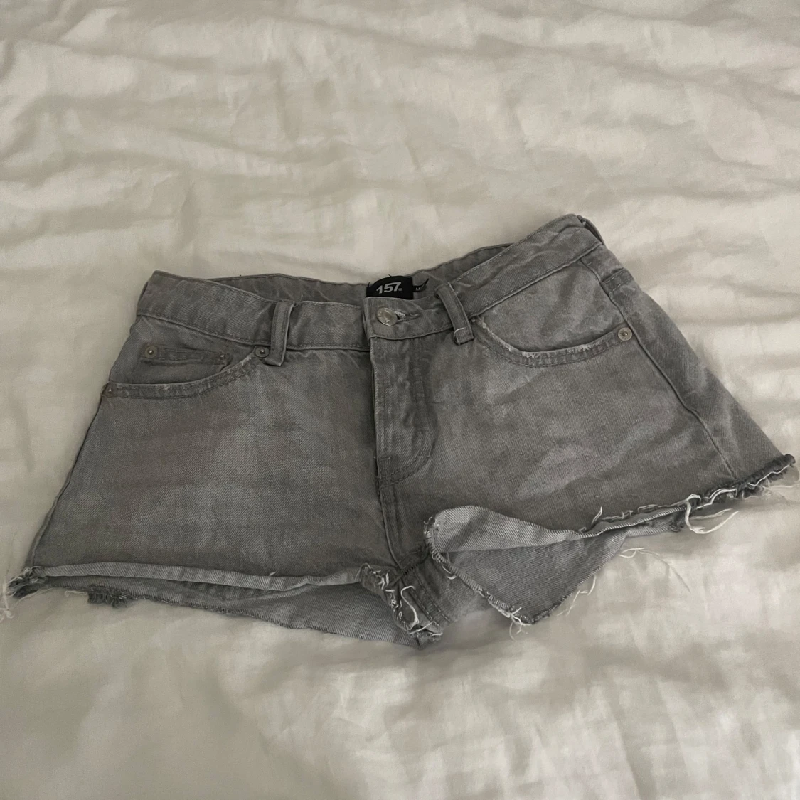 Snygga grå jeansshorts från 157 med råa, fransiga kanter och klassisk femficksdesign. Modellen har knappgylf och bälteshällor, perfekt för dig som gillar en chill och edgy stil. Passar dig som vill ha korta shorts med loose fit och cool vibe.