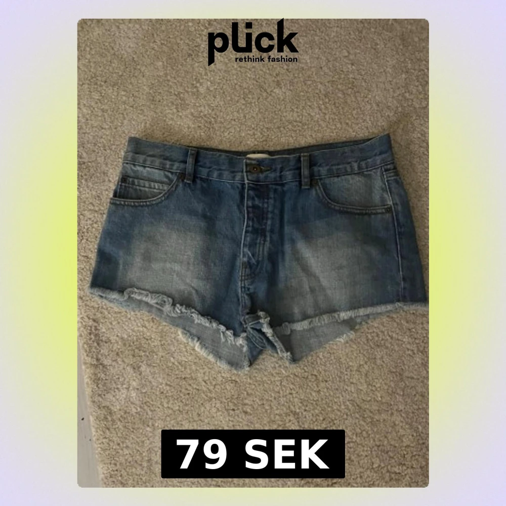 Snygga blå jeansshorts med fransig kant och klassisk femficksdesign. Shortsen har normal passform, bälteshällor och knappgylf. Perfekta för sommaren och enkla att matcha med allt.