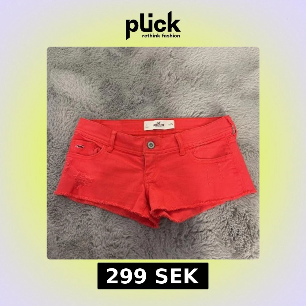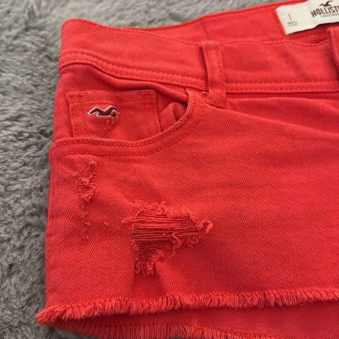 Super snygga röda lågmidjade jeans shorts från hollister med lite slitningar , storlek 25 midjemått 38 bra skick