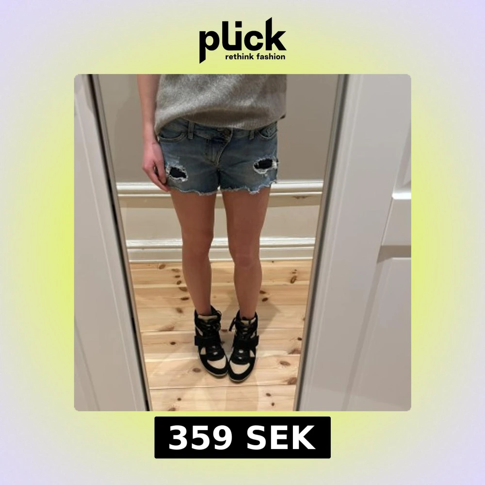Lågmidjade jeansshorts med slitningar💕Midjemått rakt över: 37🤍