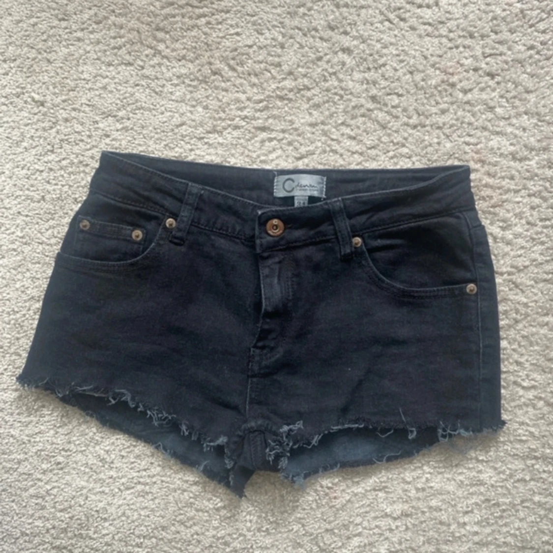 Jag säljer ett par svarta lågmidjade jeans shorts. Vet inte riktigt vart de är ifrån men tror kanske Cubus eftersom det är ett c. Säljer för 100 men pris kan diskuteras. Skriv för frågor eller bilder. 💕