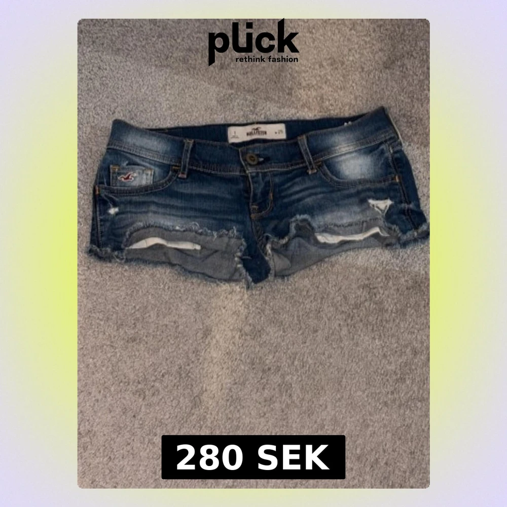 Säljer ett par blå jeansshorts från Hollister med låg midja och slitna detaljer. Shortsen är väldigt bekväma och ser väldigt snyggt ut på. Perfekta till sommaren och riktigt snygga. Dom är i storlek w25, dom motsvarar typ storlek 34