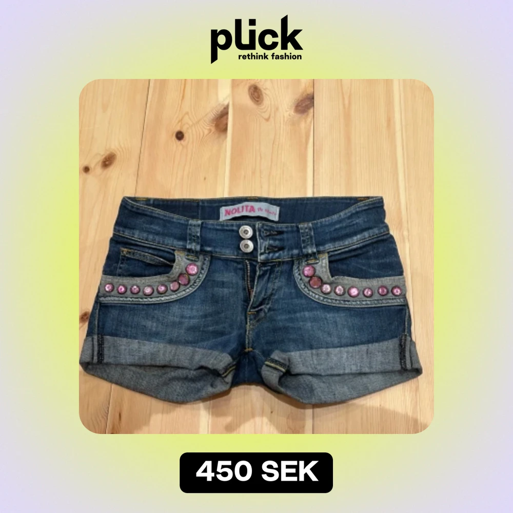 Säljer dessa lågmidjade jeansshorts i storlek 27, men de är mer som 24/25💕De saknar två stenar där bak men annars i bra skick💕