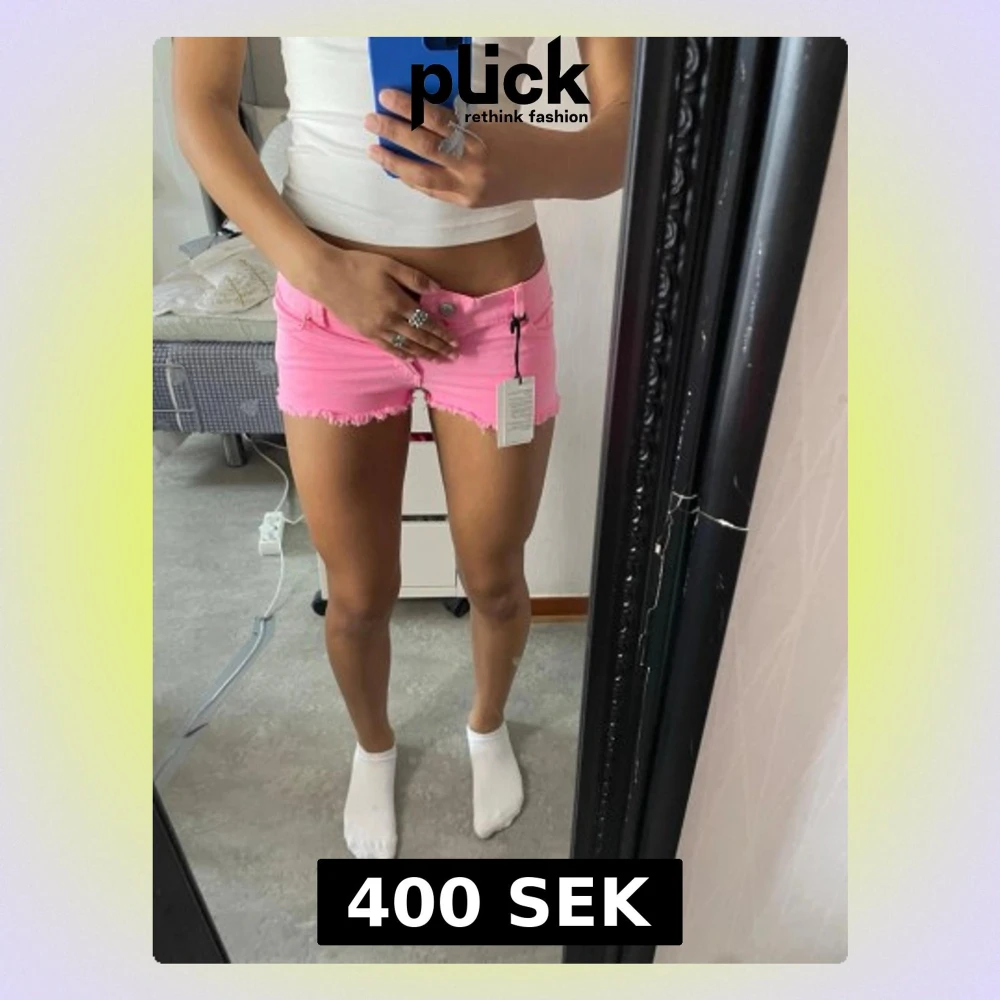 Jag säljer ett par super snygga lågmidjade rosa jeans shorts, aldrig använt och har prislapp. Tyvärr så passar de inte då de är för små. De är storlek 32❣️