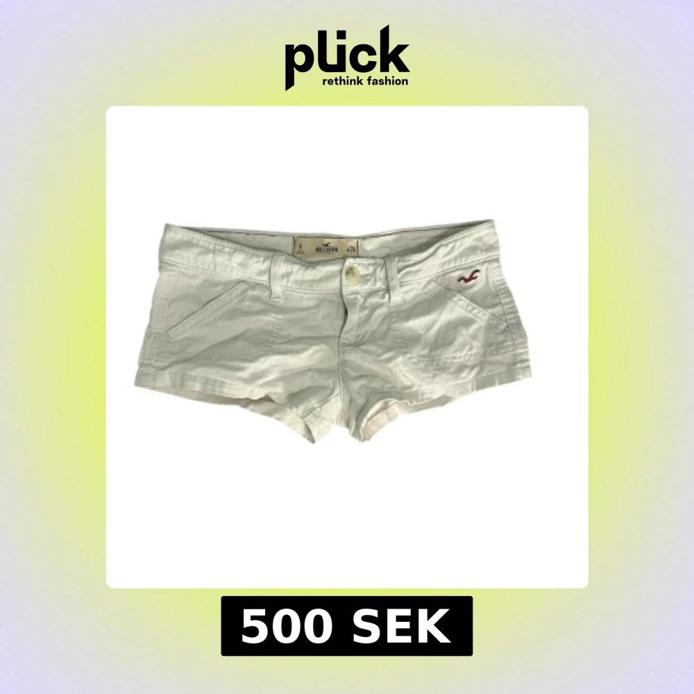 Lågmidjade vita shorts från Hollister. De har två fickor fram, två bakfickor och en liten broderad logga framtill. Gjorda i mjuk bomull, perfekta för varma dagar. Stängs med knapp och dragkedja