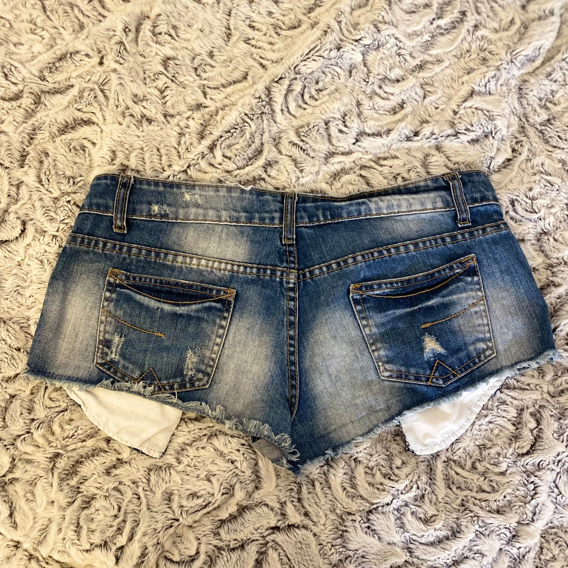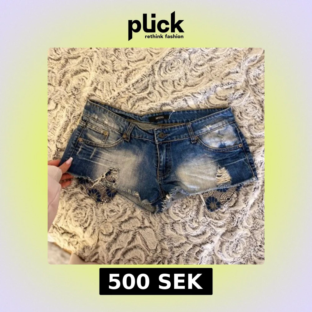 Så sjuuuuuka snygga jeansshort som är lågmidjade och korta! Blå sliten färg och har så coola detaljer! De är ifrån Invictus i storlek M-L ( säljer ej för lägre pris )
