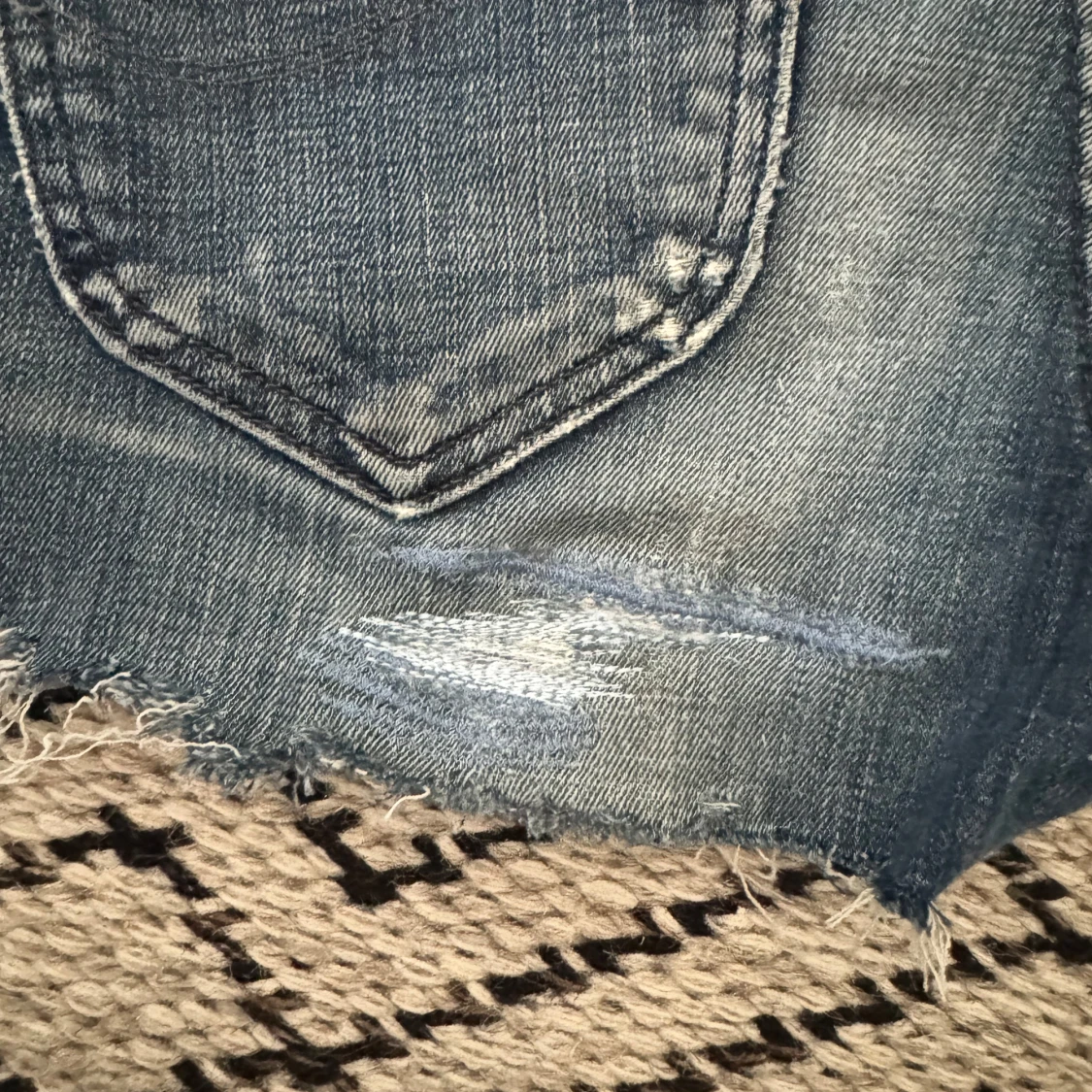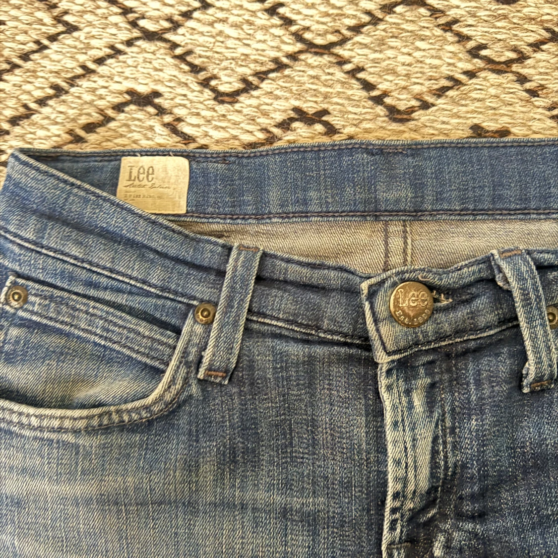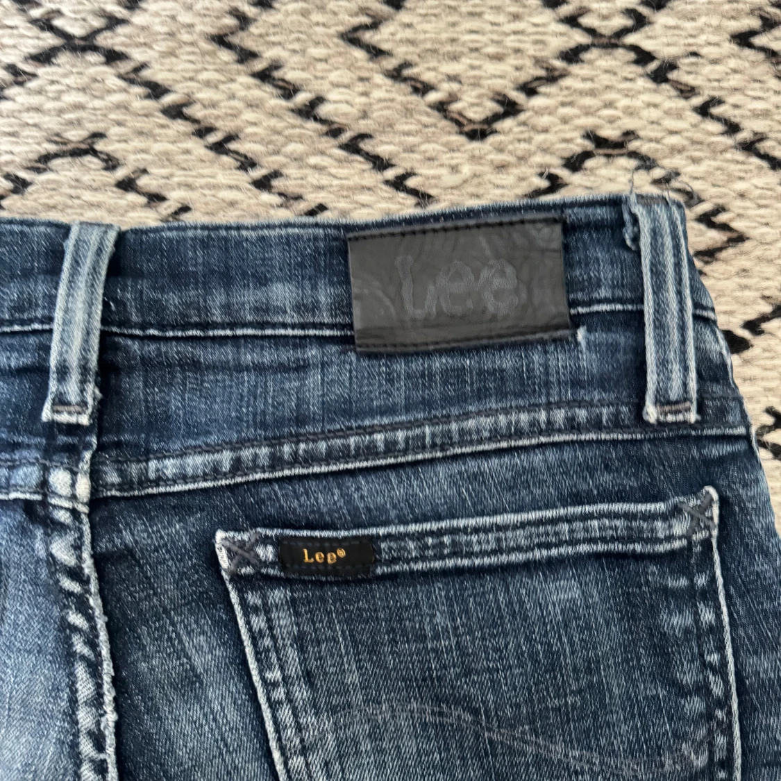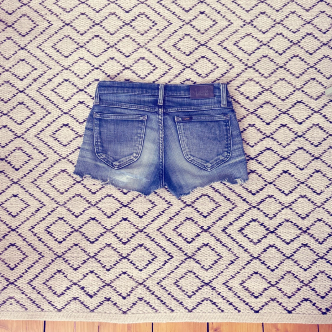 Snygga blå jeansshorts från Lee med fransiga kanter. Perfekta för sommardagar, går att klä upp och ner. Klassisk femficksdesign och låg midja. Avklippta jeans men noggrant gjort.