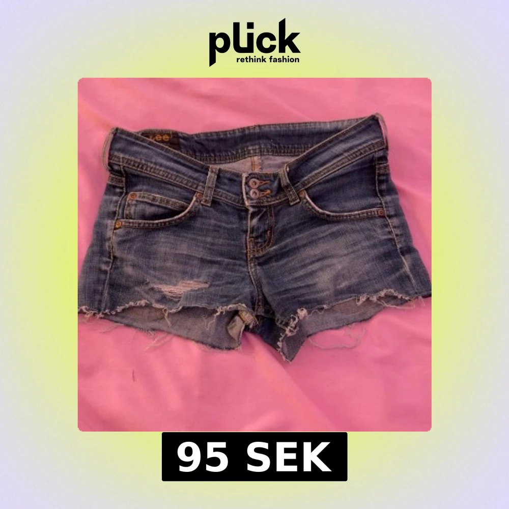 Säljer ett par blå jeansshorts från Lee med råa fransar nertill och slitningar framtill. Klassisk femficksmodell med dubbla knappar i midjan och Lee-logga bak. Perfekta för sommaren!
