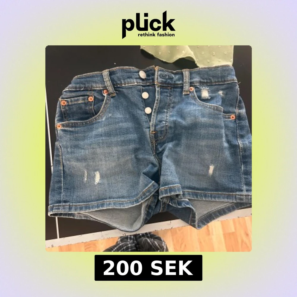 Klassiska blå jeansshorts från Levi's med slitna detaljer och fyra synliga knappar framtill. Shortsen har fem fickor, bälteshällor och den ikoniska Levi's-lappen bak. Perfekta för en avslappnad stil under varma dagar.
