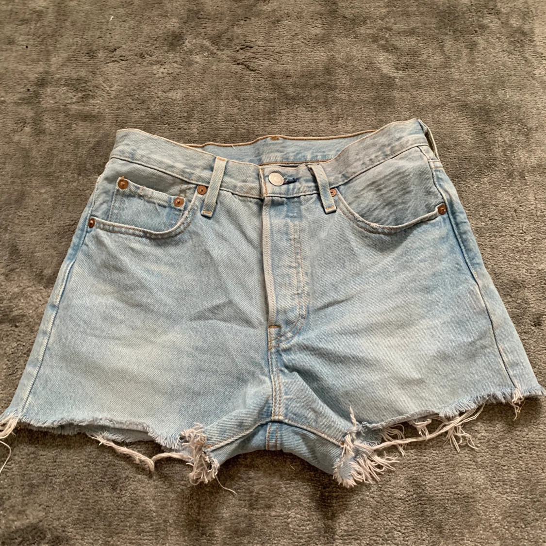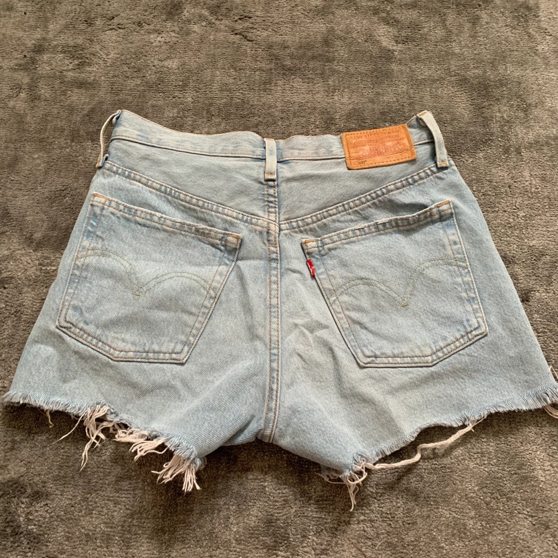Levis jeans shorts, perfekta nu till sommaren! Dom är lite skrynkliga på bilden för att dom inte har varit använda på ett långt tag, de försvinner när man tvättar dom🥰 dom är storlek 24 men skulle säga att dom även passar 25