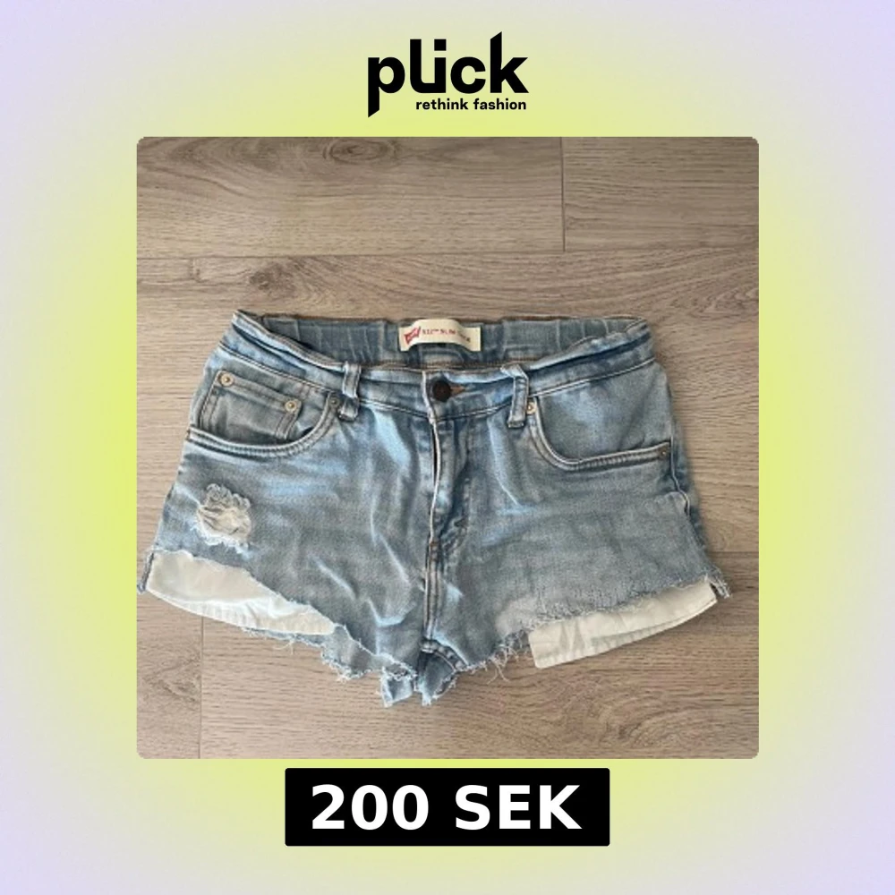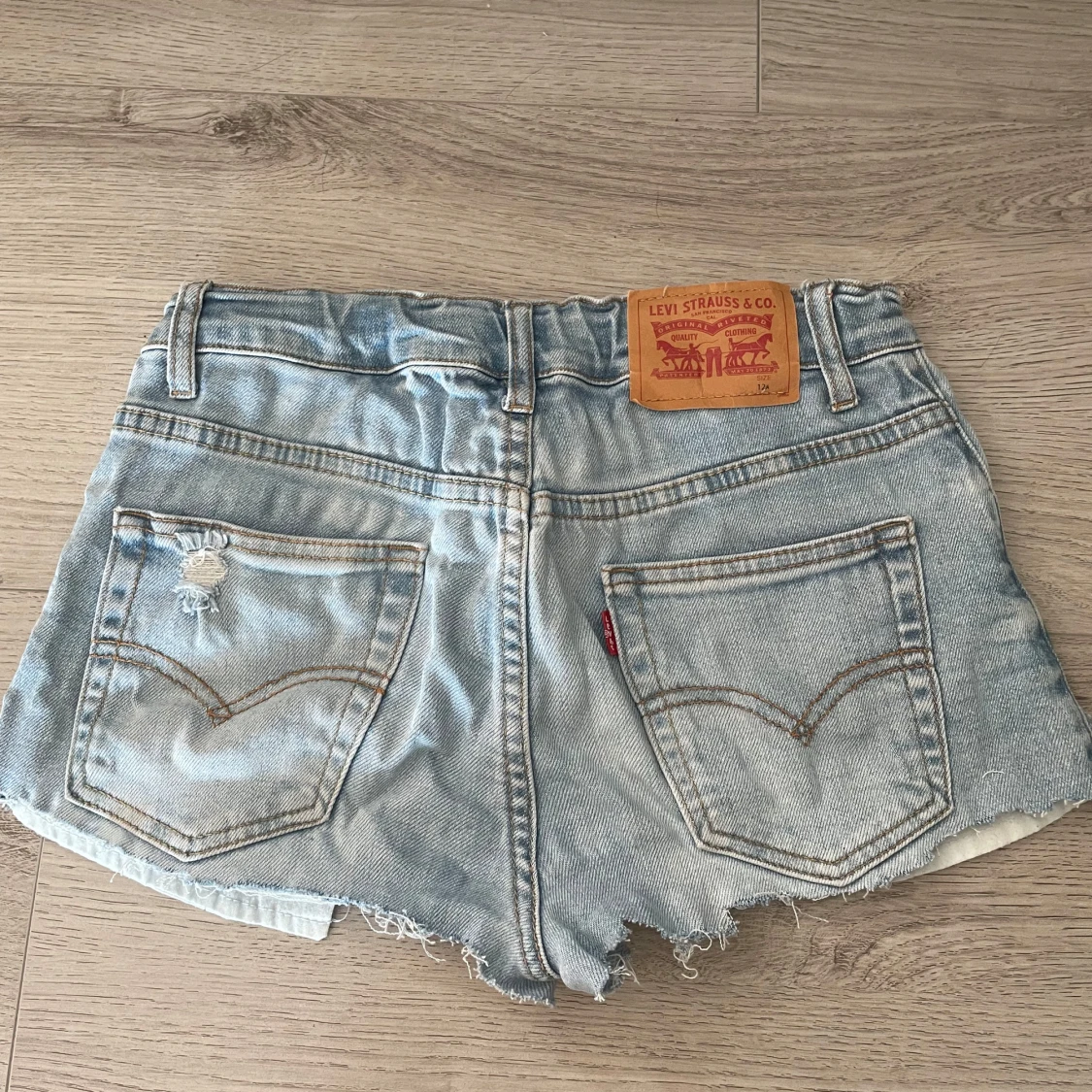 Ljusblå jeansshorts från Levi's med rå kant och slitningar både fram och bak. Klassisk femficksmodell med knapp och dragkedja. Shortsen har låg midja och är gjorda i mjukt bomullsmaterial.