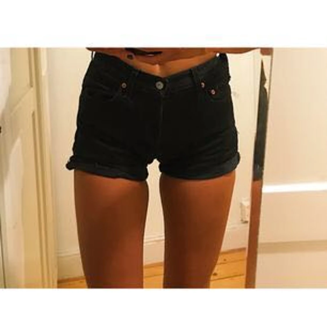 Svarta jeansshorts från Levis, köpa second hand! Står ej storlek men passar mig som har storlek S!