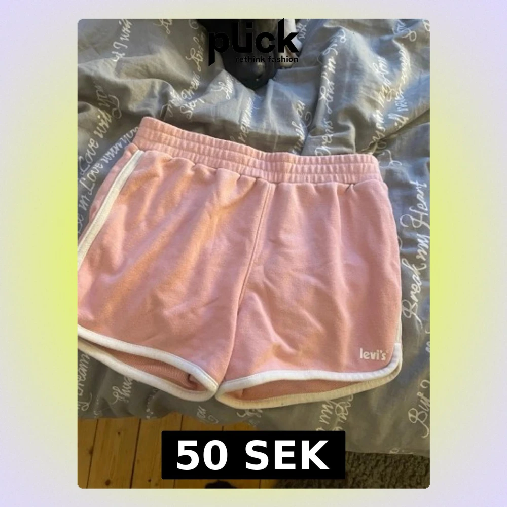 Säljer ett par mjuka rosa shorts från Levi's med vit kant och resår i midjan. Shortsen har en sportig look och är tillverkade i stickat material som känns skönt mot huden. Perfekta för en avslappnad stil.