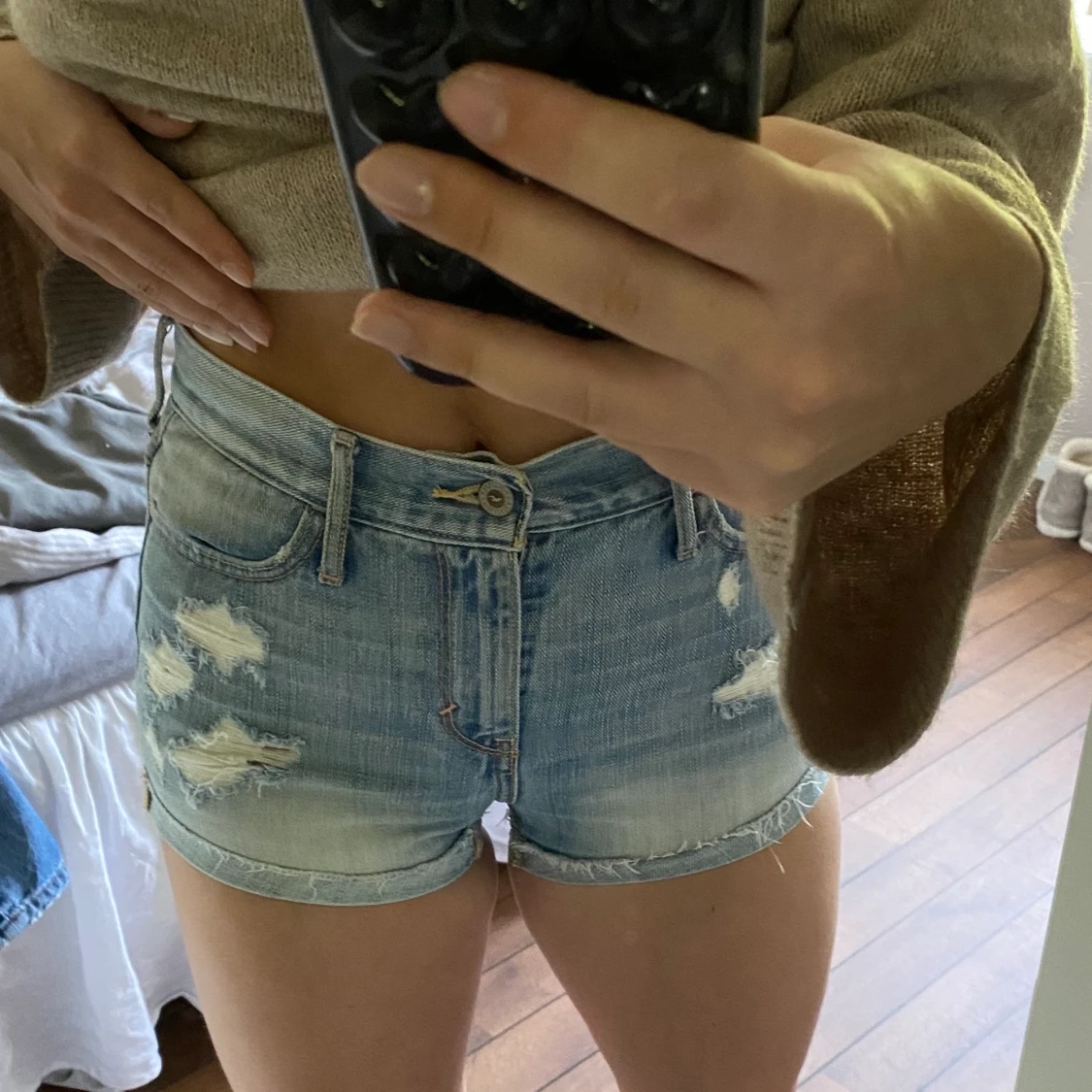Perfekta jeansshortsen till sommaren från Hollister. Använda ett fåtal gånger så de är i superfint skick. Storlek w25.