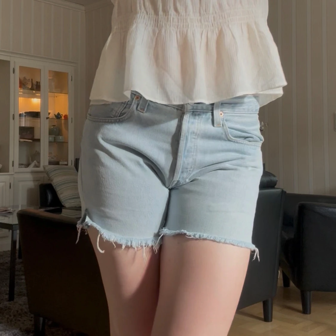 Jeansshorts från levis, passar s/m💕💕obs sömmen i ena låret har gått upp några cm (se bild), går att sy ihop eller göra likadant på andra sidan💕