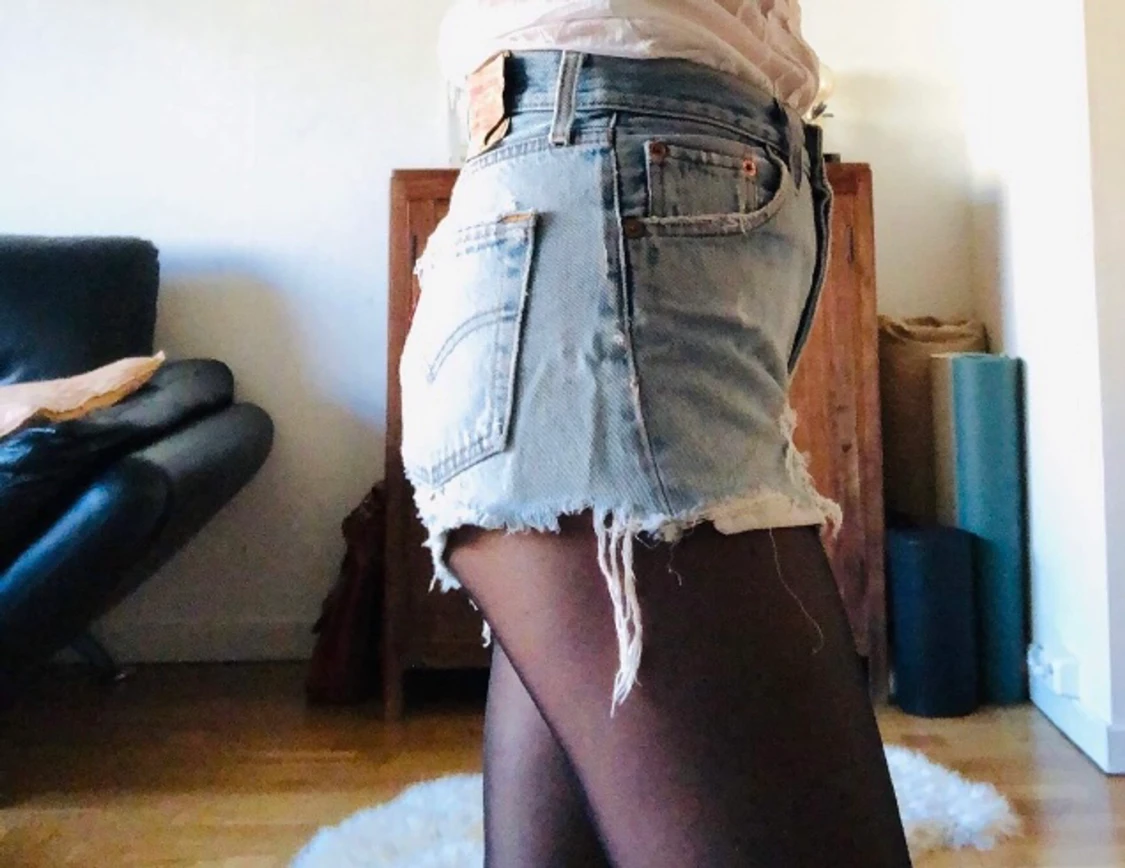 Snygga shorts med hög midja. Något större hål baktill, men snyggt sådant!! 😎 Midjeomkrets: 72 cm