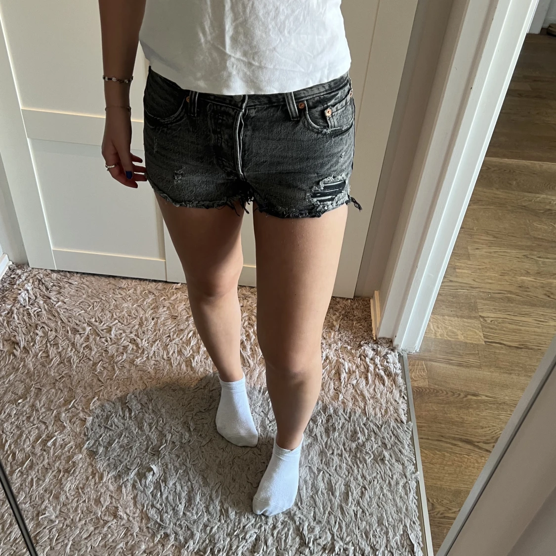 Säljer mina fina Levis shorts då de tyvärr blivit för små! I perfekt skick och superfin mörkgrå färg. Storlek Xs med medel till låg midja!! (250kr + frakt 66kr)
