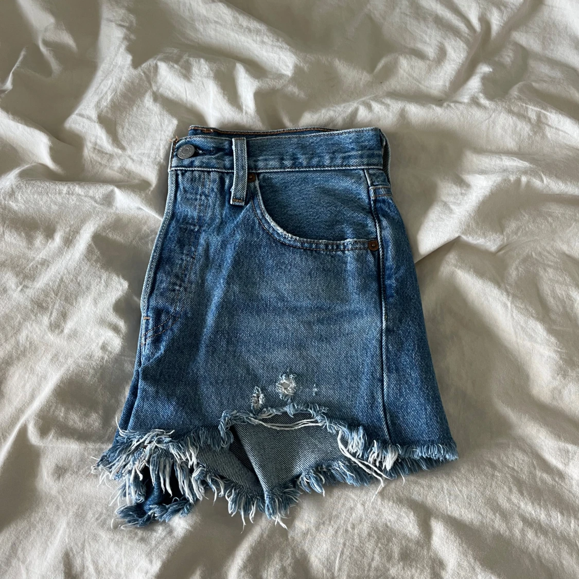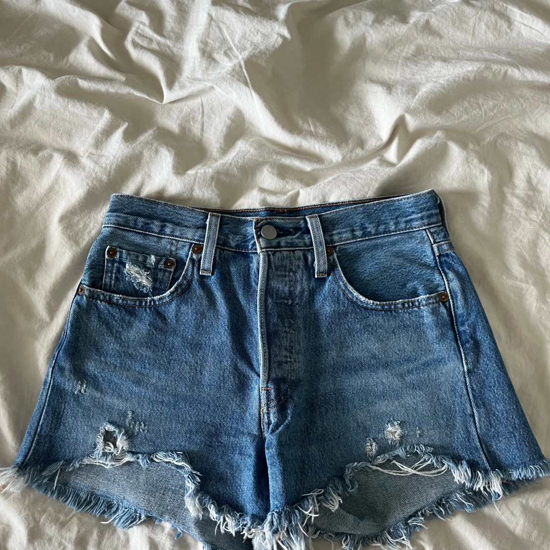 Säljer dessa super snygga shorts då dom tyvärr inte passar, är lite högre i midjan och har slitningar längst ner. Använda fåtall gånger. Model 501