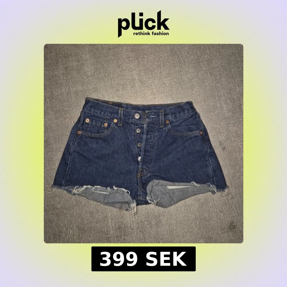 Mörkblå jeansshorts från Levi's modell 501 midja till naveln. W28