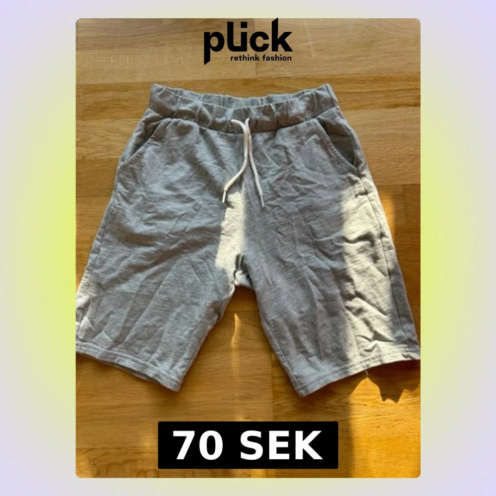 Grå mjukisshorts i bomull med elastisk midja och vit snörning framtill. Shortsen har två sidofickor och en avslappnad passform, perfekta för chill dagar eller träning.
