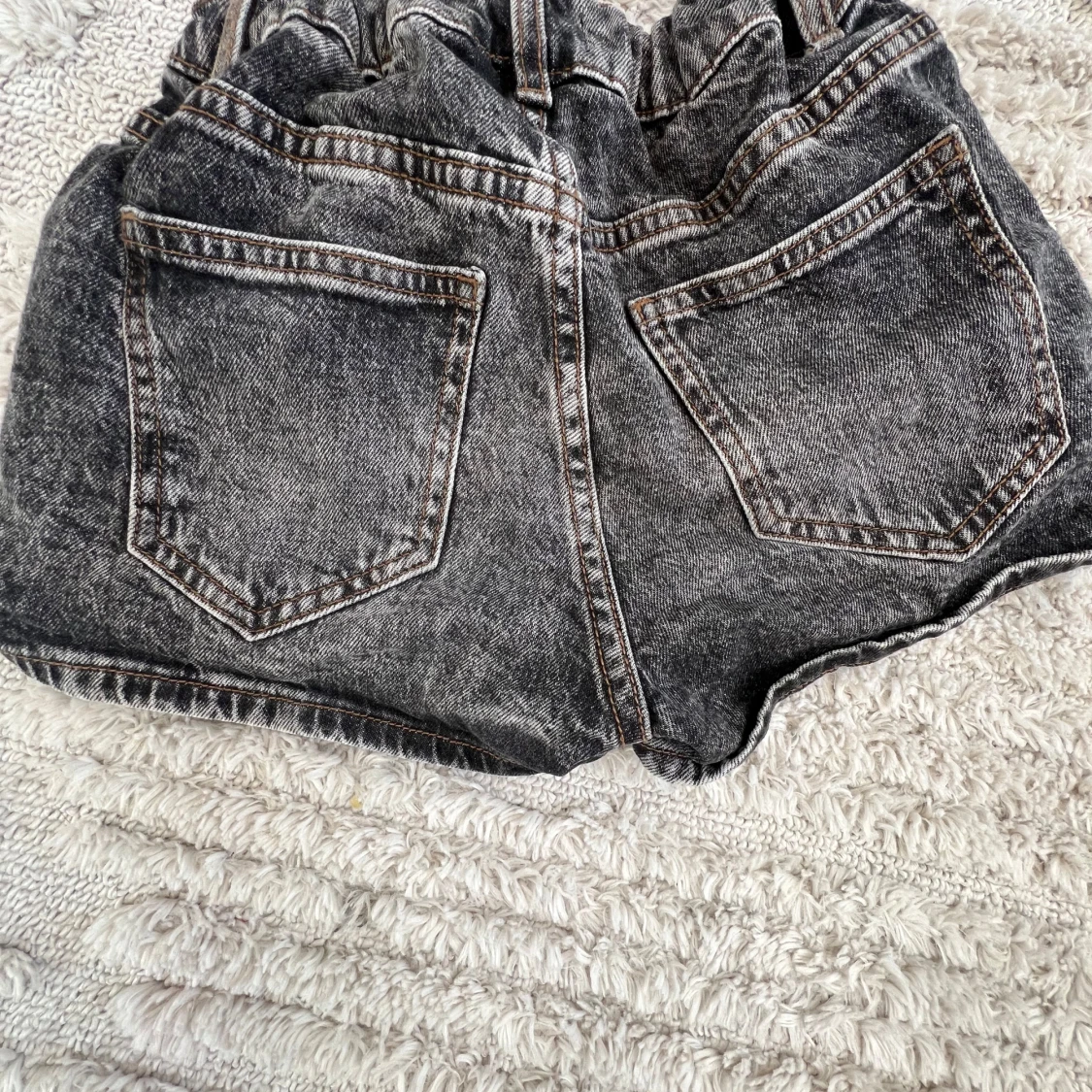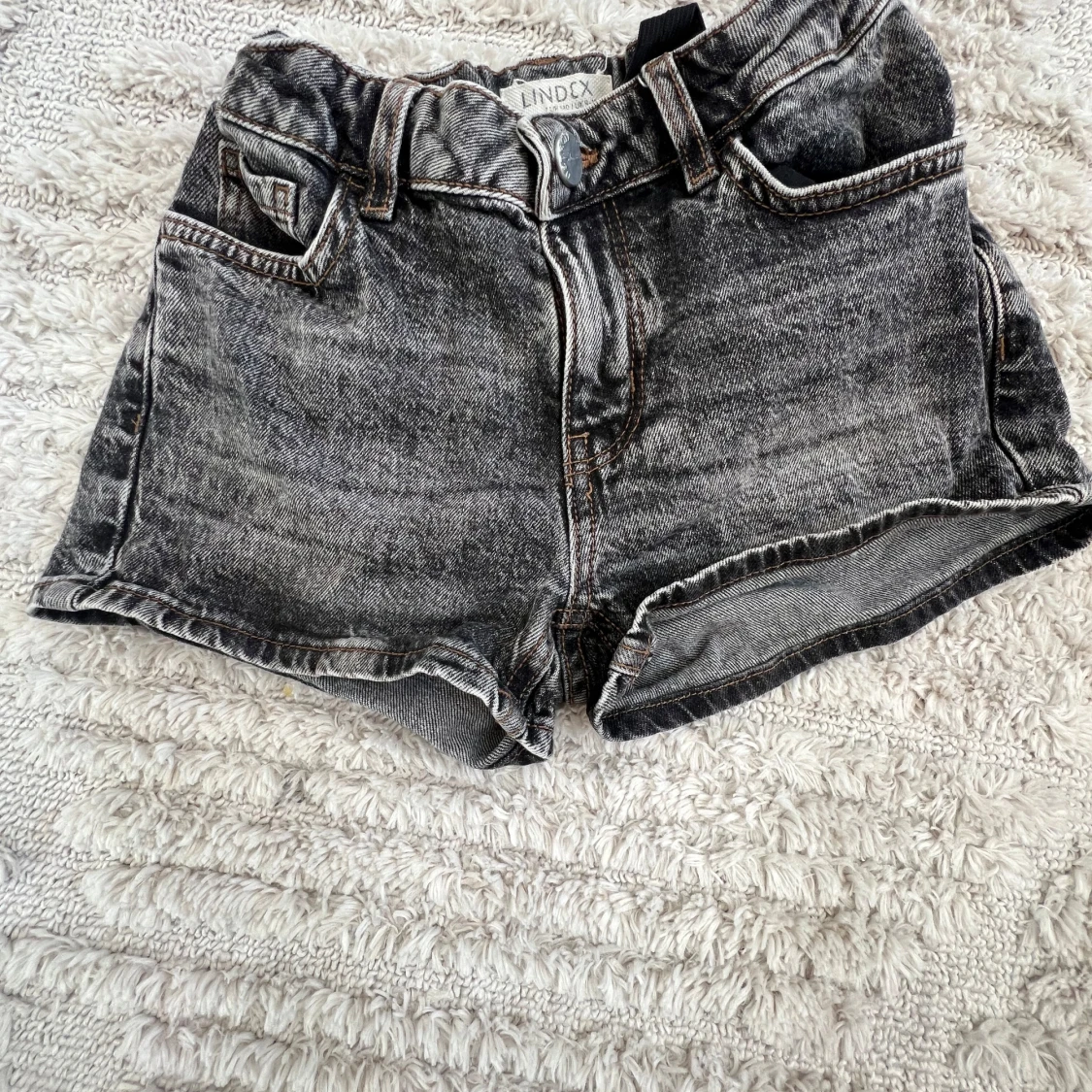 Snygga svarta jeansshorts från Lindex med en cool tvättad look. De har klassisk femficksdesign och en bekväm passform. Perfekta för en avslappnad stil.