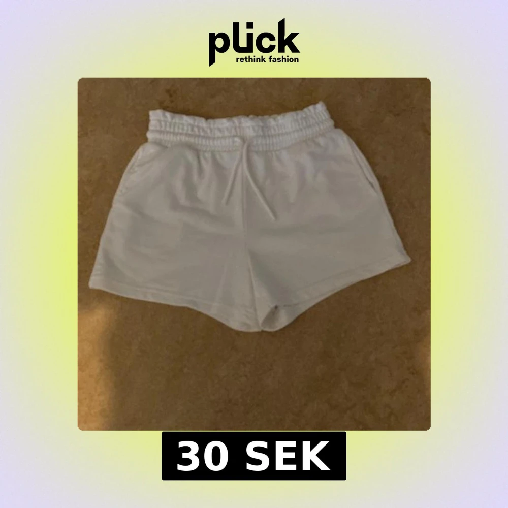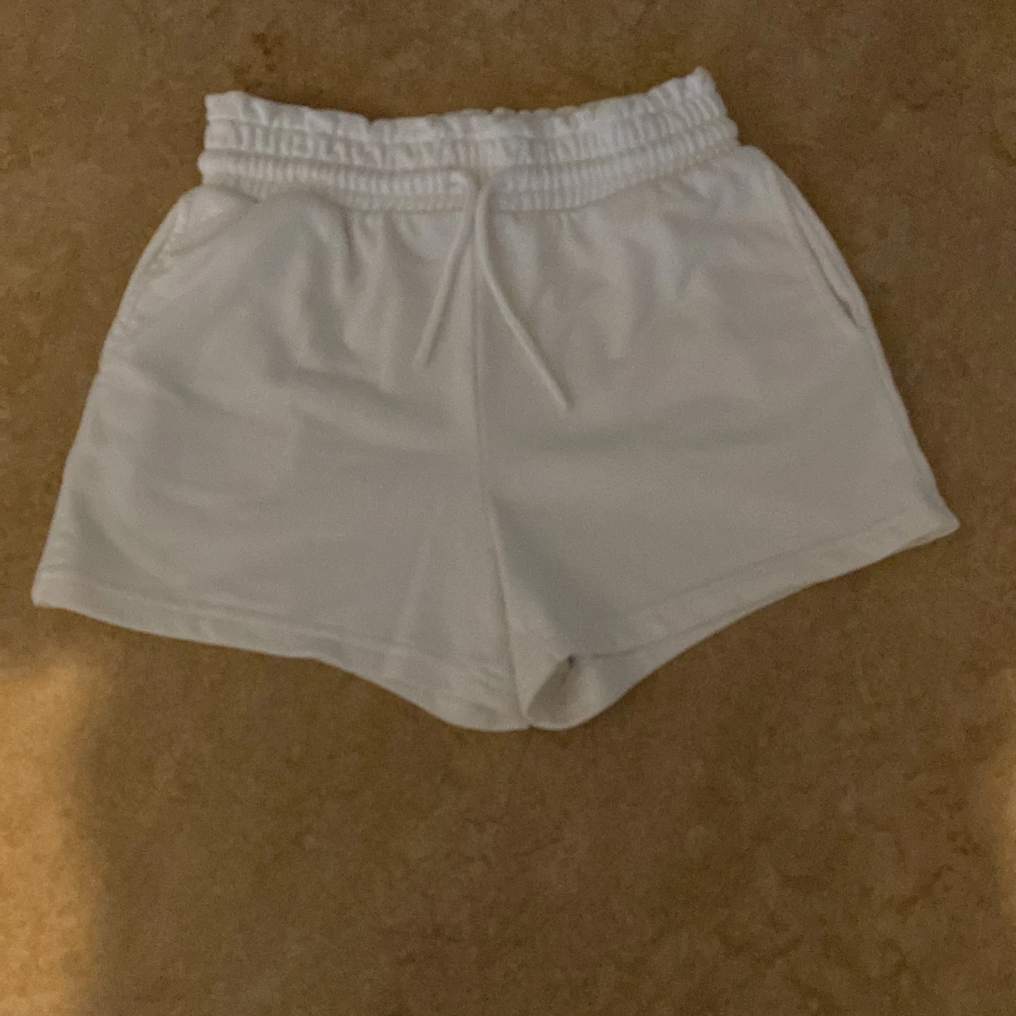 Snygga vita shorts med elastisk midja och snörning framtill. De har en avslappnad passform och är perfekta för varma dagar. Shortsen har fickor på sidorna och är gjorda i ett mjukt material som känns skönt mot huden.