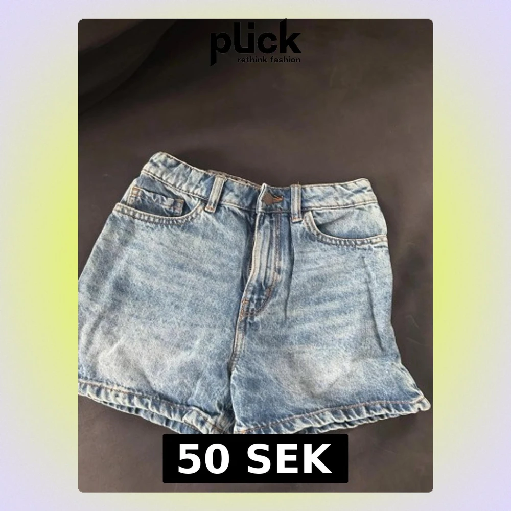 Klassiska blå jeansshorts från Lindex med fem fickor och knappgylf. Shortsen har en avslappnad passform och är perfekta för varma dagar. Snyggt slitna detaljer och tidlös design som funkar till allt.