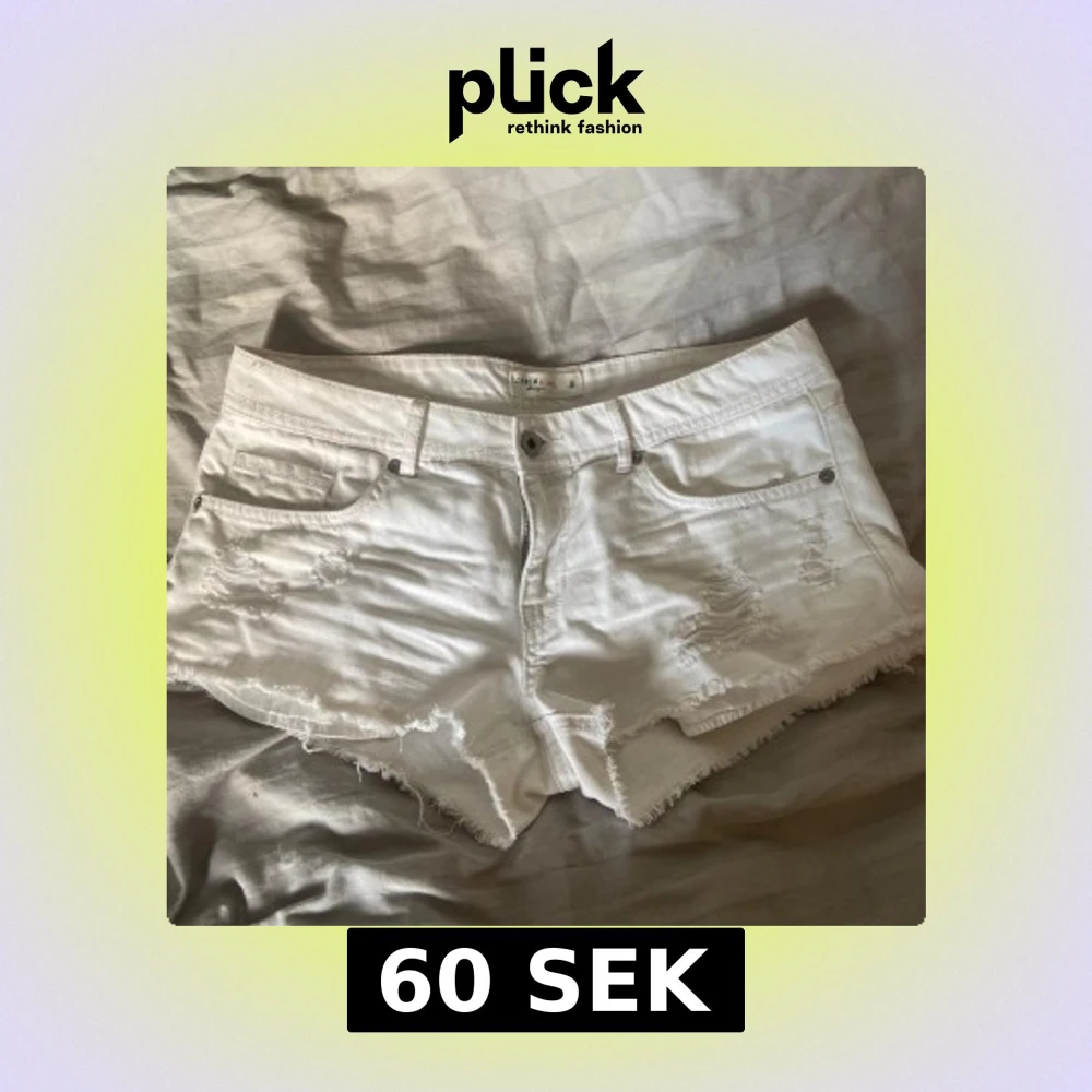 Snygga vita jeansshorts från Lindex med fransig kant och slitna detaljer framtill. Klassisk med kna.