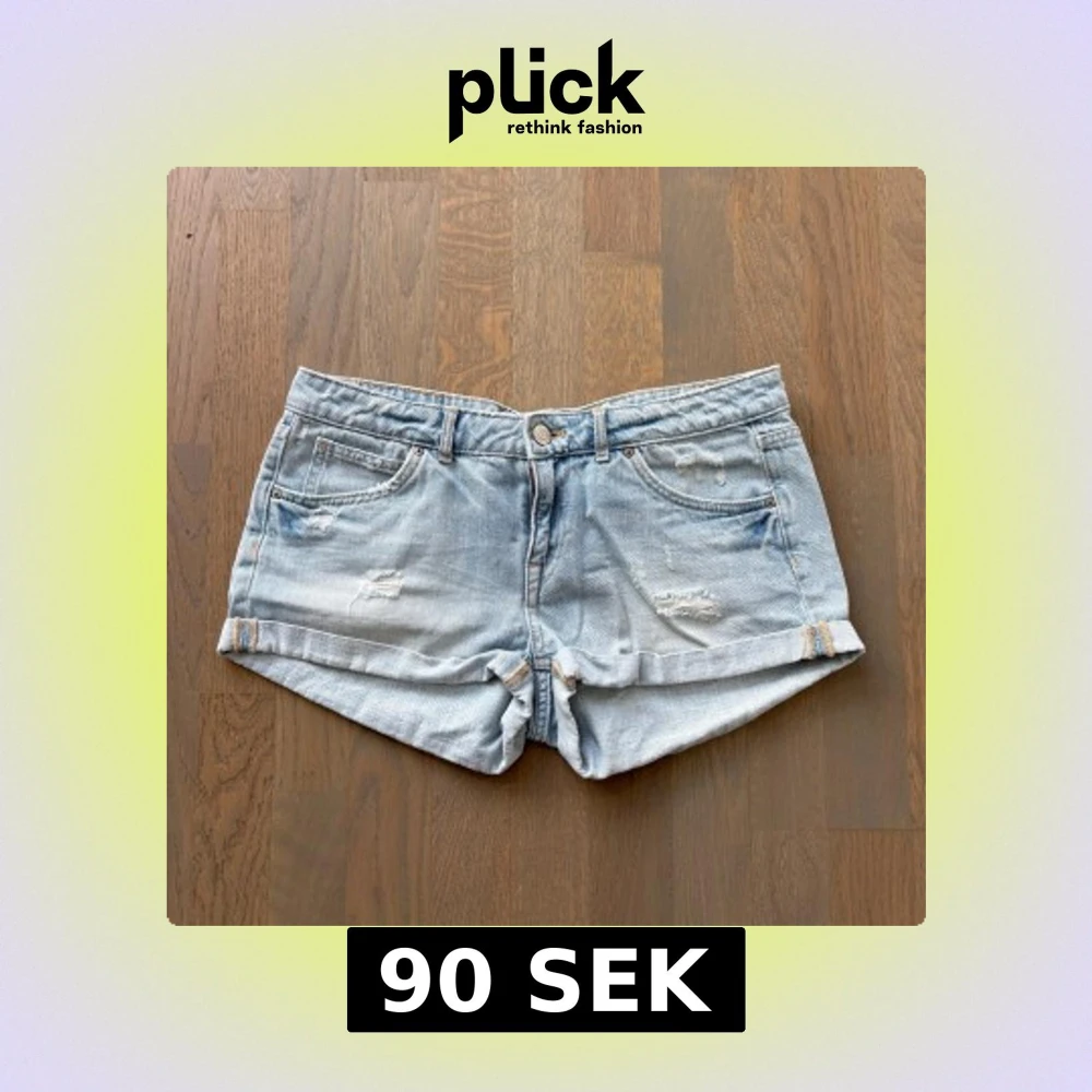 Snygga jeansshorts i mycket bra skick. Shortsen har en liten fläck i mitten på baksidan, vilket man kan se på sista bilden. Hittar inte storleken men dom sitter som st S