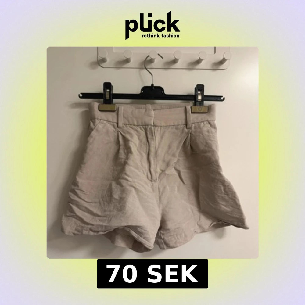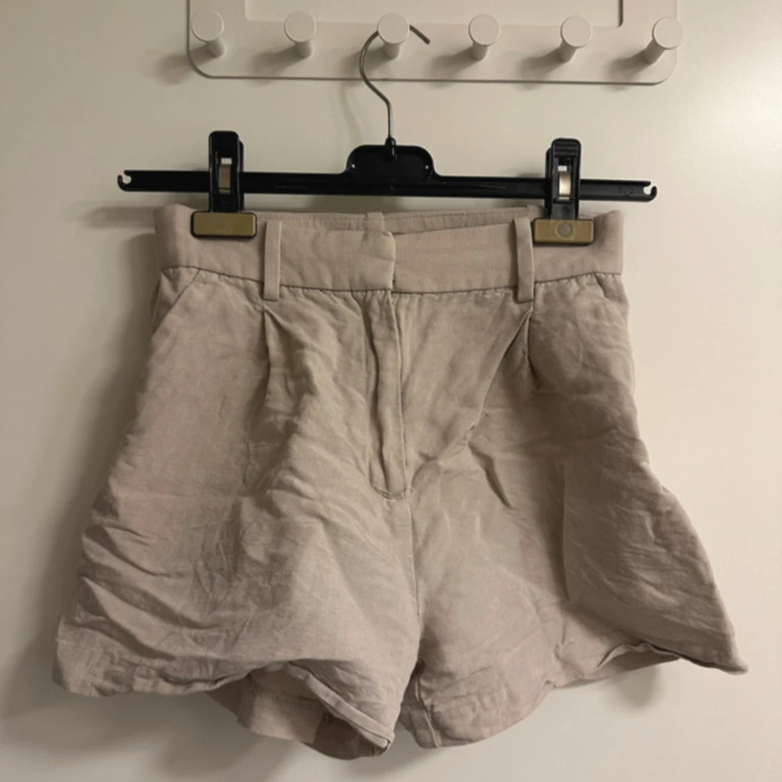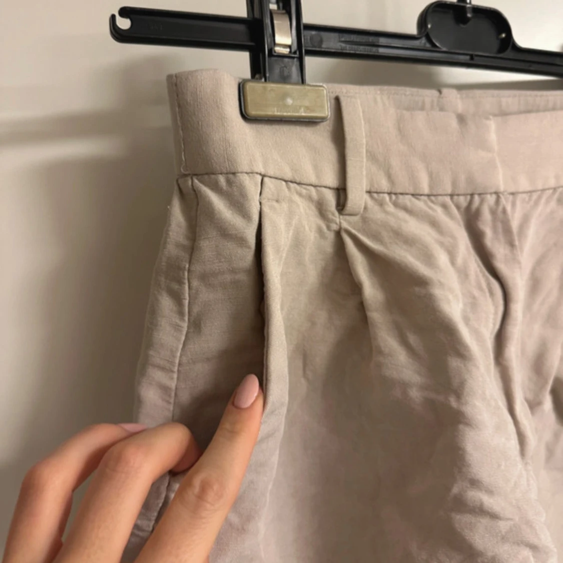 Beiga linne shorts med fickor och dragkedja