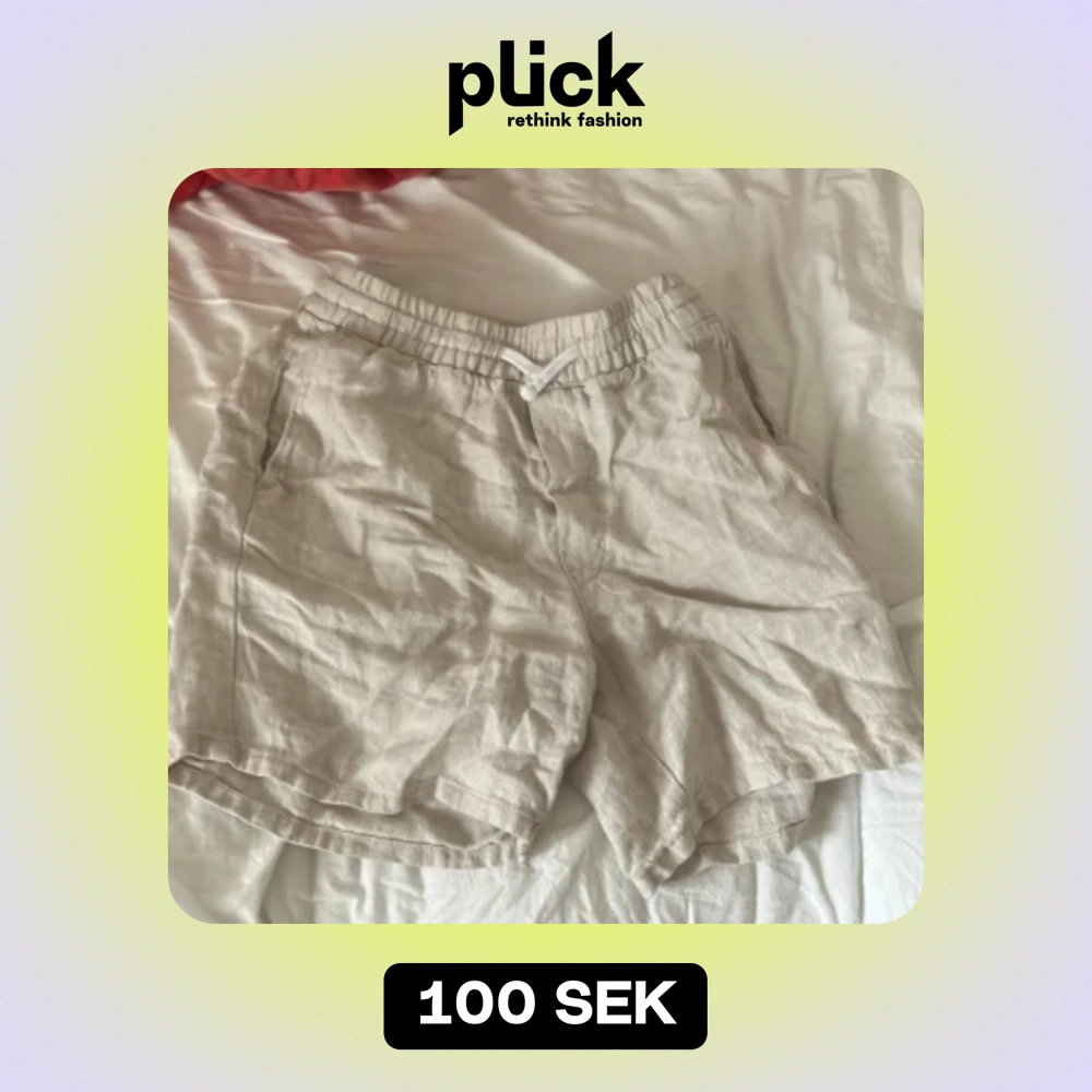 Säljer nu dessa riktigt sköna linneshorts från weekday för de är för små för mig skicket är 9/10