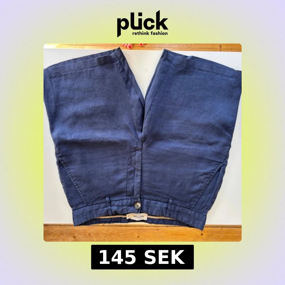 Snygga marinblå shorts från Dressmann i ren linne. Modellen har midwaist, knappstängning och praktiska fickor med knappdetaljer. Sparsmakat använda! Storlek XS