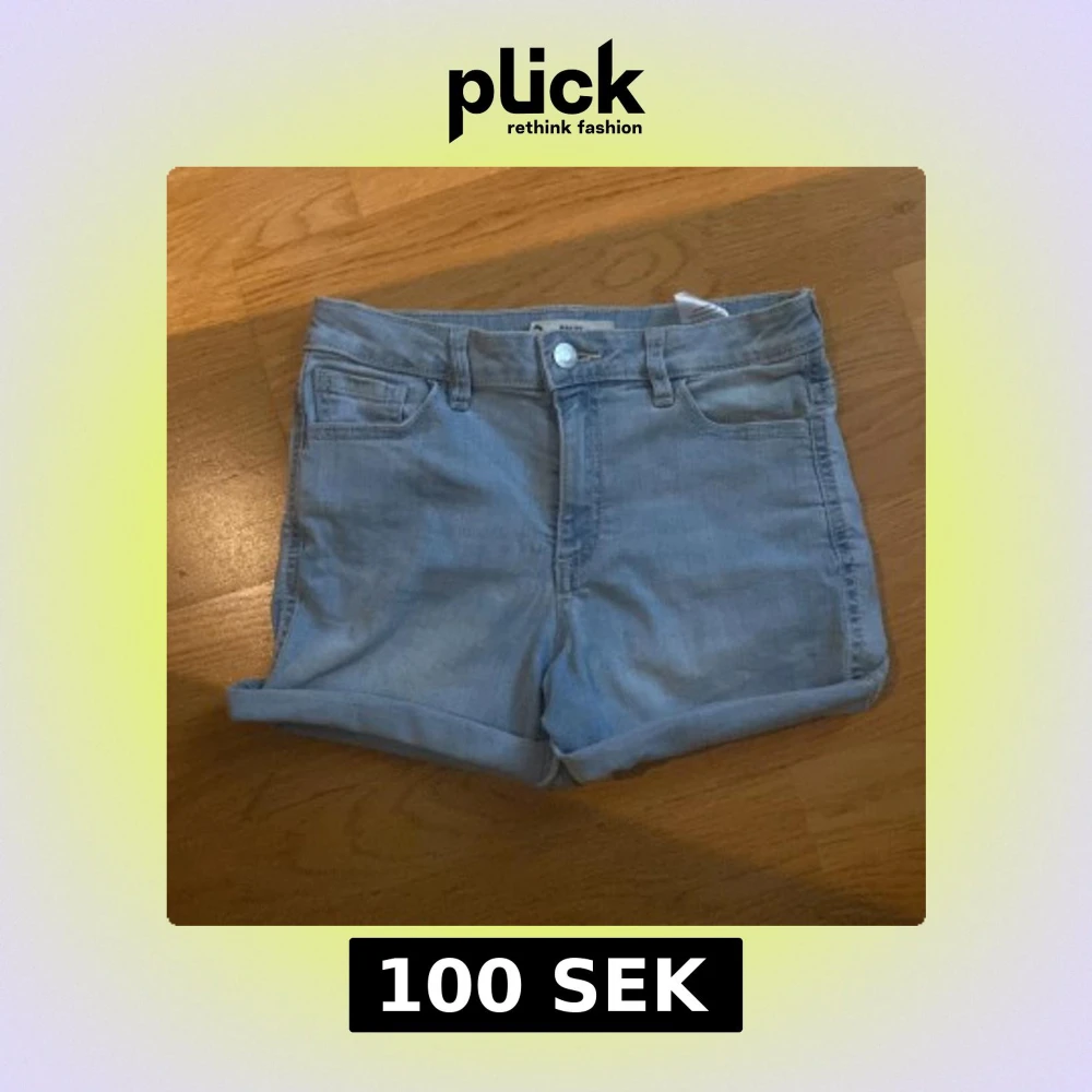 Snygga ljusblå jeansshorts från Cubus. Shortsen har normal passform (obs kanten är uppvikt). Använt några gånger men ser nya ut