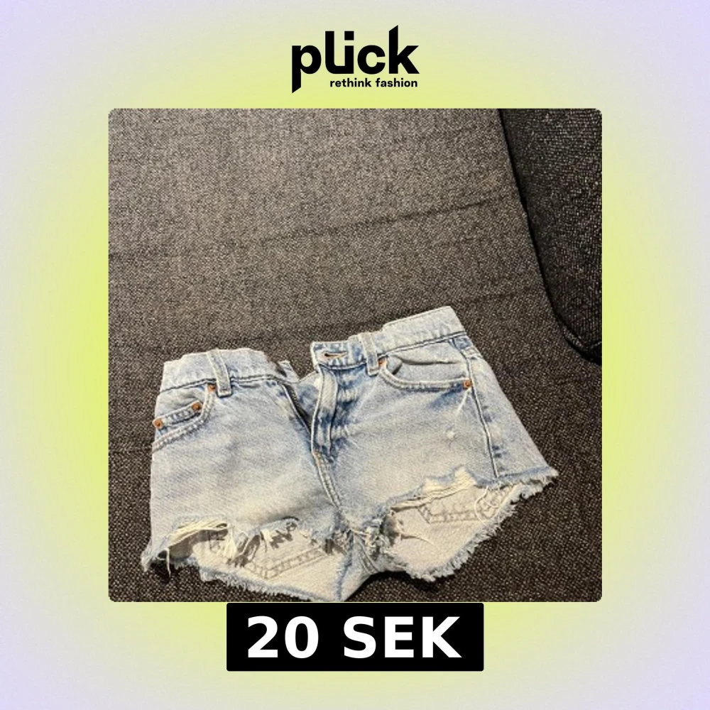 Säljer ett par ljusblå jeansshorts från Gina Tricot med fransade kanter och klassisk femficksdesign. Shortsen har hög midja och råa benslut för en avslappnad look. Perfekta för varma dagar!
