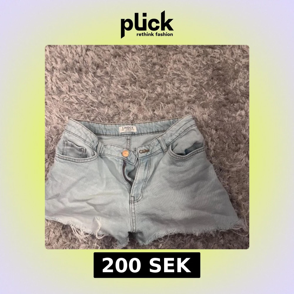 Snygga ljusblå jeansshorts från Lindex med råa kanter nertill och klassisk femficksdesign. Shortsen har bälteshällor, knapp och dragkedja framtill. Perfekta för varma dagar och enkel att matcha med allt.
