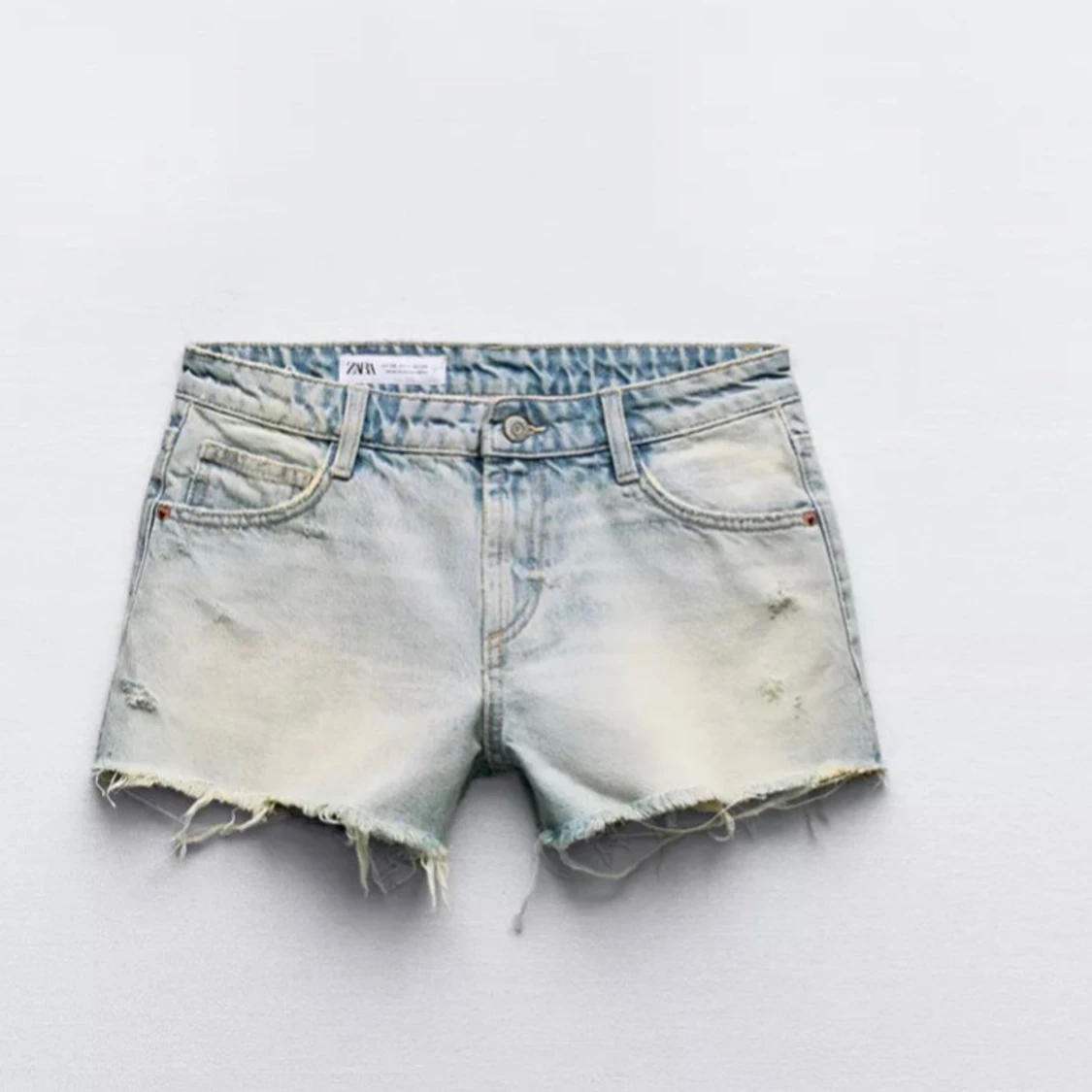 Snygga ljusblå jeansshorts från Zara med fransig kant och slitna. Perfekta för sommaren och ger en avslappnad vibe till din outfit. Dom är använda endast 1 gång så dom är i nytt skick. Pris går att diskuteras💓💓