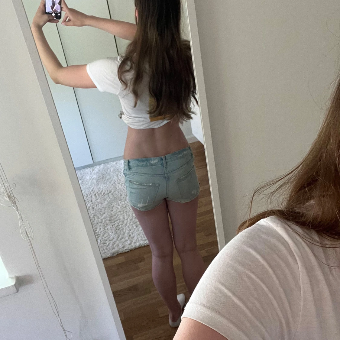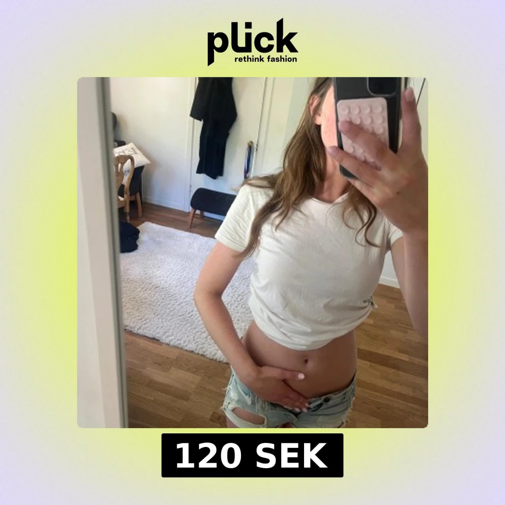 Säljer ett par ljusblå jeansshorts som är mid/low waist. Klassisk femficksmodell med knapp och dragkedja. Perfekta för varma dagar och en avslappnad stil.