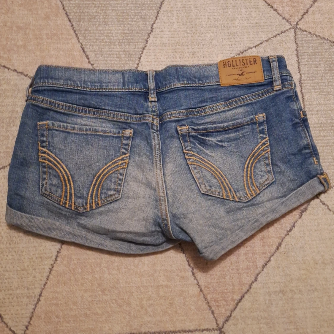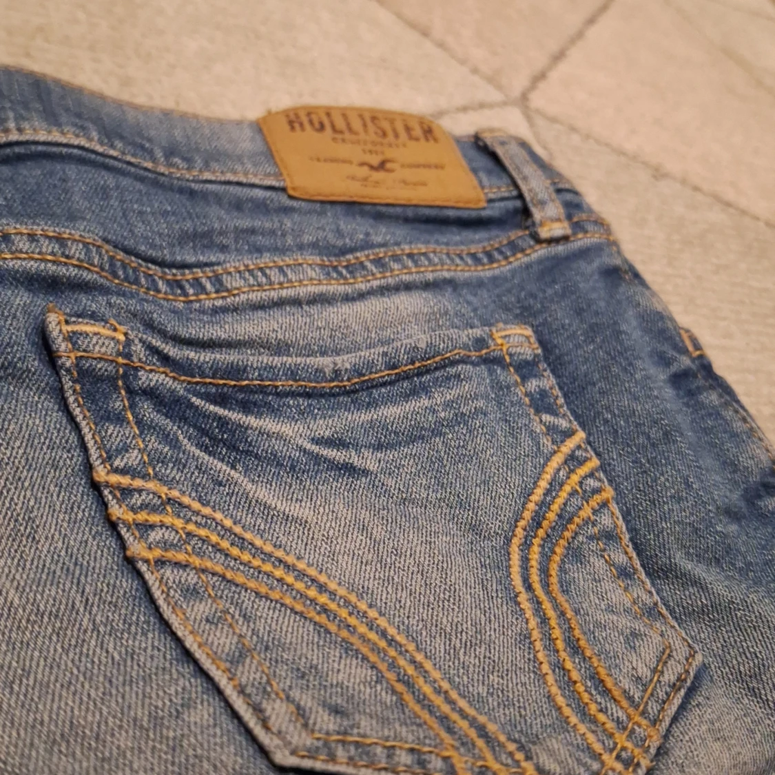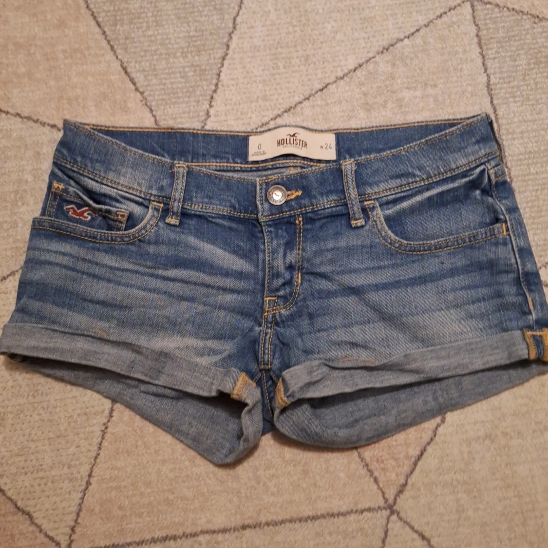 Ett par ljus blå Hollister shorts i storlek w24. De har ett snyggt motiv på fickorna och de är low waist. Själv har jag ändast använt den ett par gånger, men de är köpta secondhand. De är I mycket bra skick skulle jag säga och har inga skador. Säljer dem pga att de är för små för mig✨️