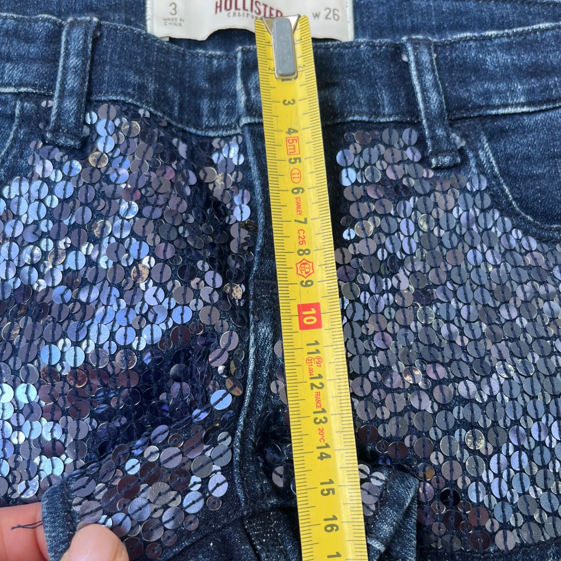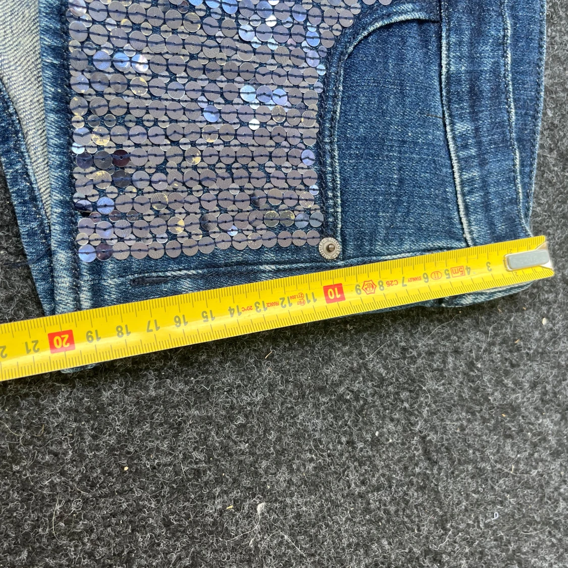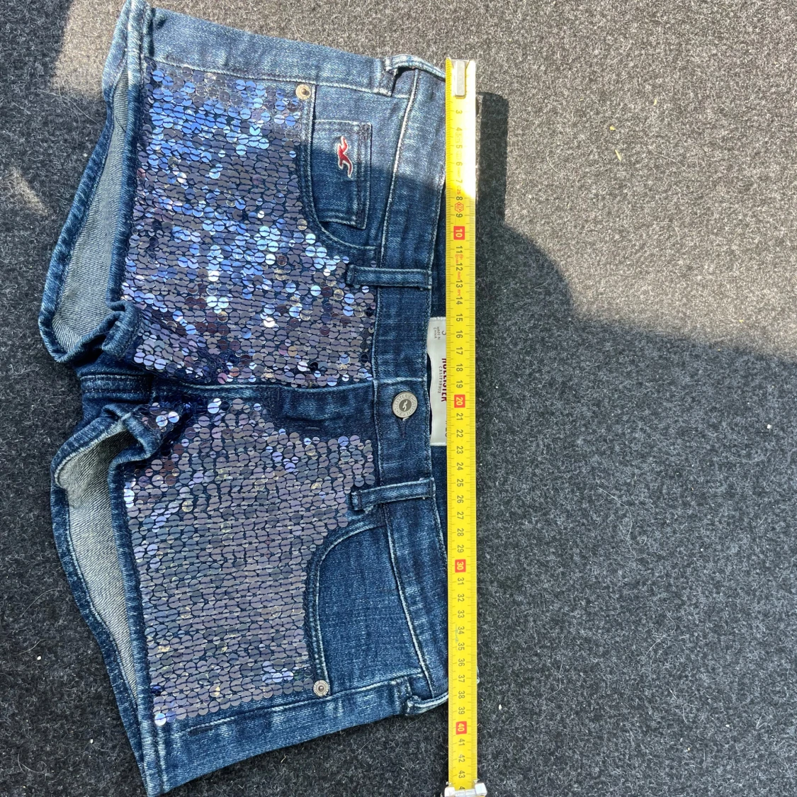 Supersnygga glittriga jeansshorts i mycket fint skick! De är lågmidjade och korta, mått finns på bilder💖 Har ingen bild på då de är för små😇
