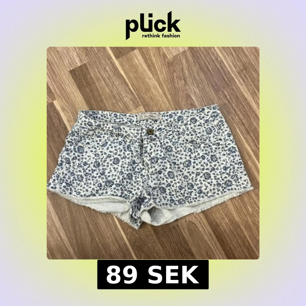 Snygga vita jeansshorts från lft med blått blommönster. Klassisk femficksmodell, råa kanter och knappgylf. Perfekta för sommaren och ger en fräsch vibe till din outfit.