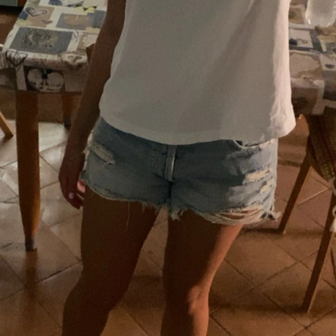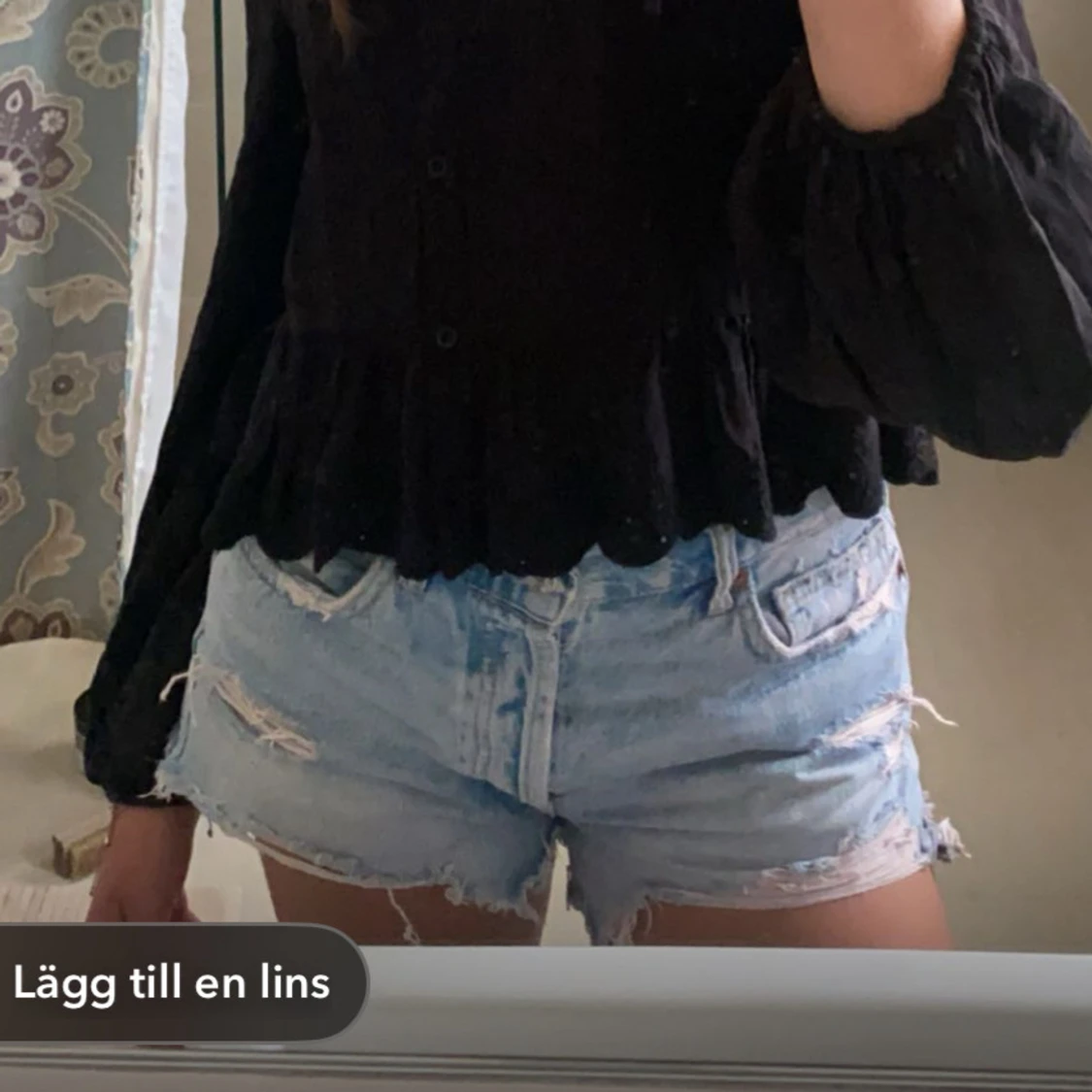 Säljer ett par ljusblå jeansshorts från Zara. Säljer 2 par, ett par ljusa och ett par mörkare. Skriv för bilder. Kan ta ett gemensamt pris för båda