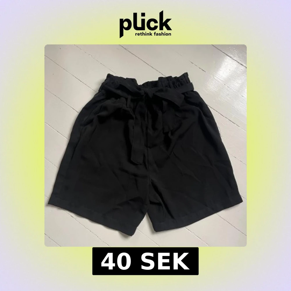 Svarta shorts med hög midja och knytband i midjan. De har en lös passform och är tillverkade i ett mjukt, lätt tyg som ger en avslappnad känsla. Perfekta för varma dagar och enkla att matcha med olika toppar. Skriv för fler bilder💞