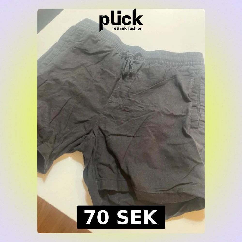 Säljer tre par shorts, ett par i mörkgrått och ett i olivgrönt. Båda har elastisk midja med snörning och sidofickor. Perfekta för sommaren och chill dagar. Materialet känns mjukt och bekvämt, troligen bomull.