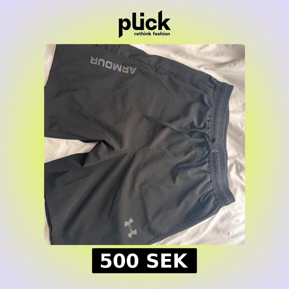 Svarta träningsshorts från Under Armour med elastisk midja och snörning. Shortsen har en diskret regnbågsfärgad logga och text på ena benet. Perfekta för gymmet eller löprundan, med en loose fit och sportig känsla.