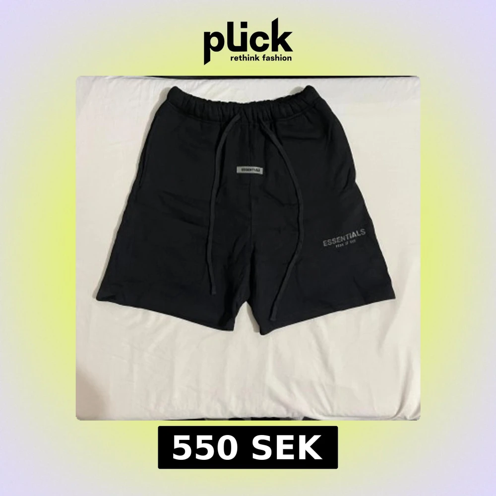 Svarta shorts från Essentials Fear of God med elastisk midja och snörning. Klassisk och enkel design med logga framtill. Perfekta för en avslappnad stil.