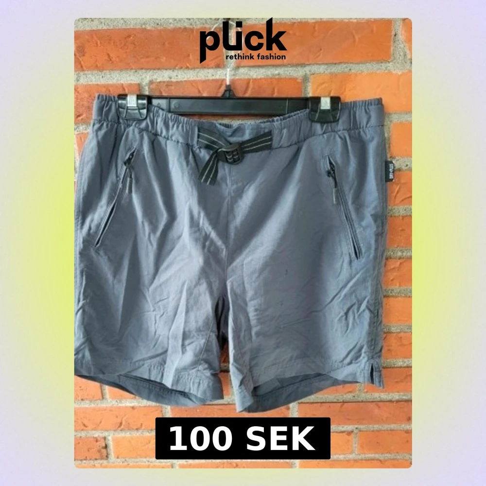 Säljer ett par grå träningsshorts från Nakamura med elastisk midja och snörning. Shortsen har flera praktiska fickor med dragkedja och är gjorda i ett lätt syntetmaterial med Dry Plus-teknologi. Perfekta för aktiva dagar och sport.