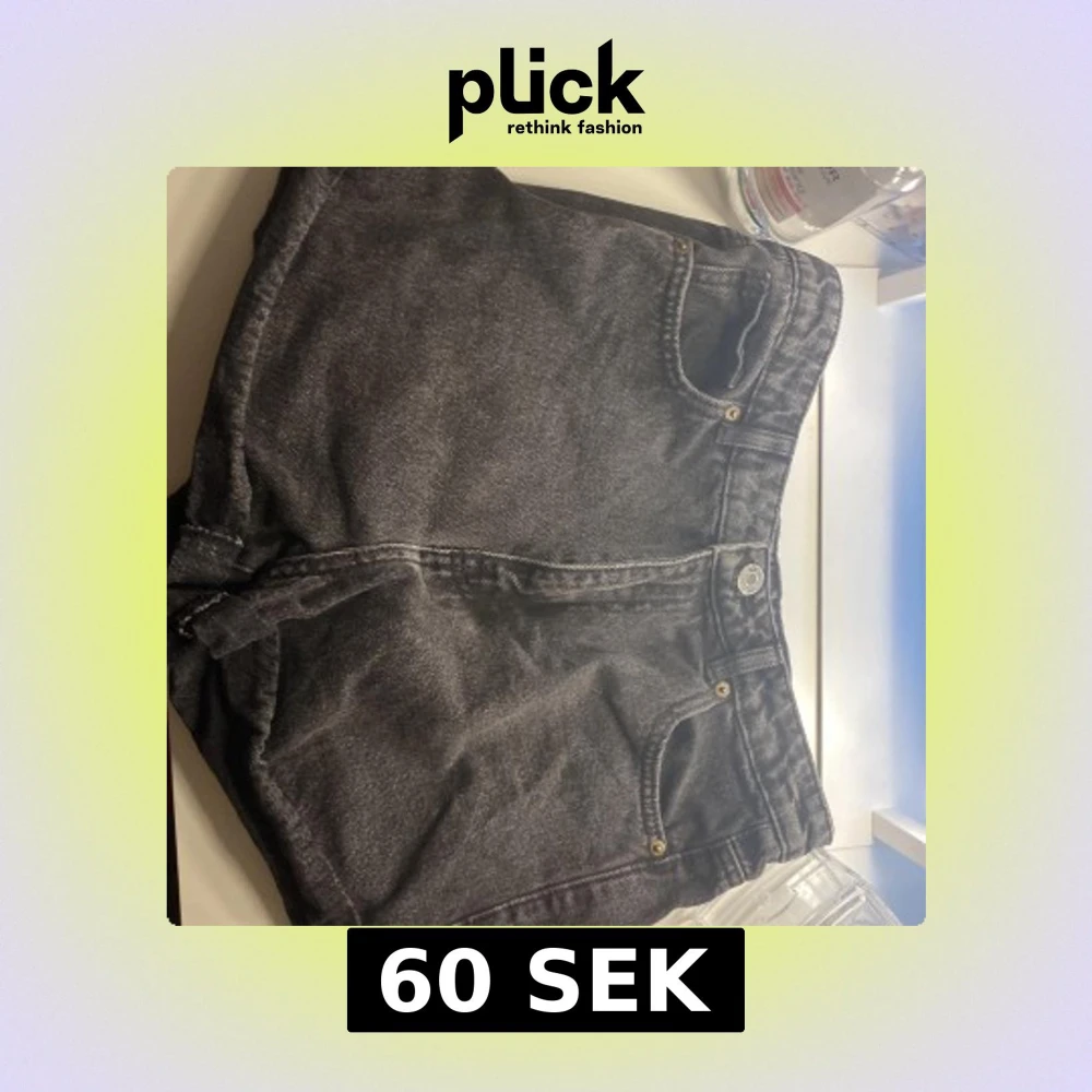 Snygga svarta jeansshorts med hög midja och klassisk femficksdesign. Shortsen har en mörk tvätt och tydliga sömmar, samt bälteshällor och knappstängning framtill. Perfekta för en chill och stilren look.