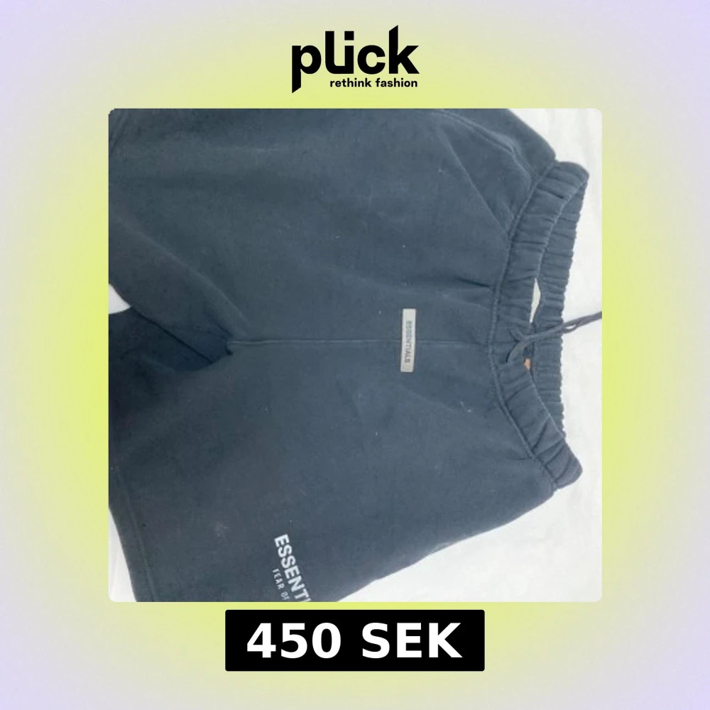Svarta shorts från Essentials Fear of God med broderad logga framtill. Modellen har elastisk midja med snörning och är tillverkad i mjuk bomull. Perfekta för chill eller träning, klassisk loose fit och stilren design.