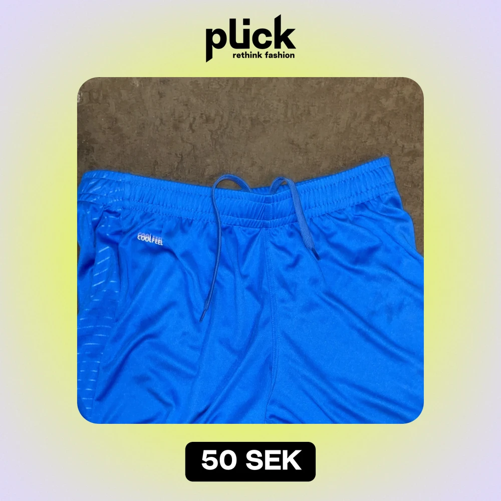 Säljer ett par blå träningsshorts från Salming i storlek medium. De är i nytt skick och har en bekväm passform med snörning i midjan. Perfekta för träning eller löpning med ett svalt och lätt material.