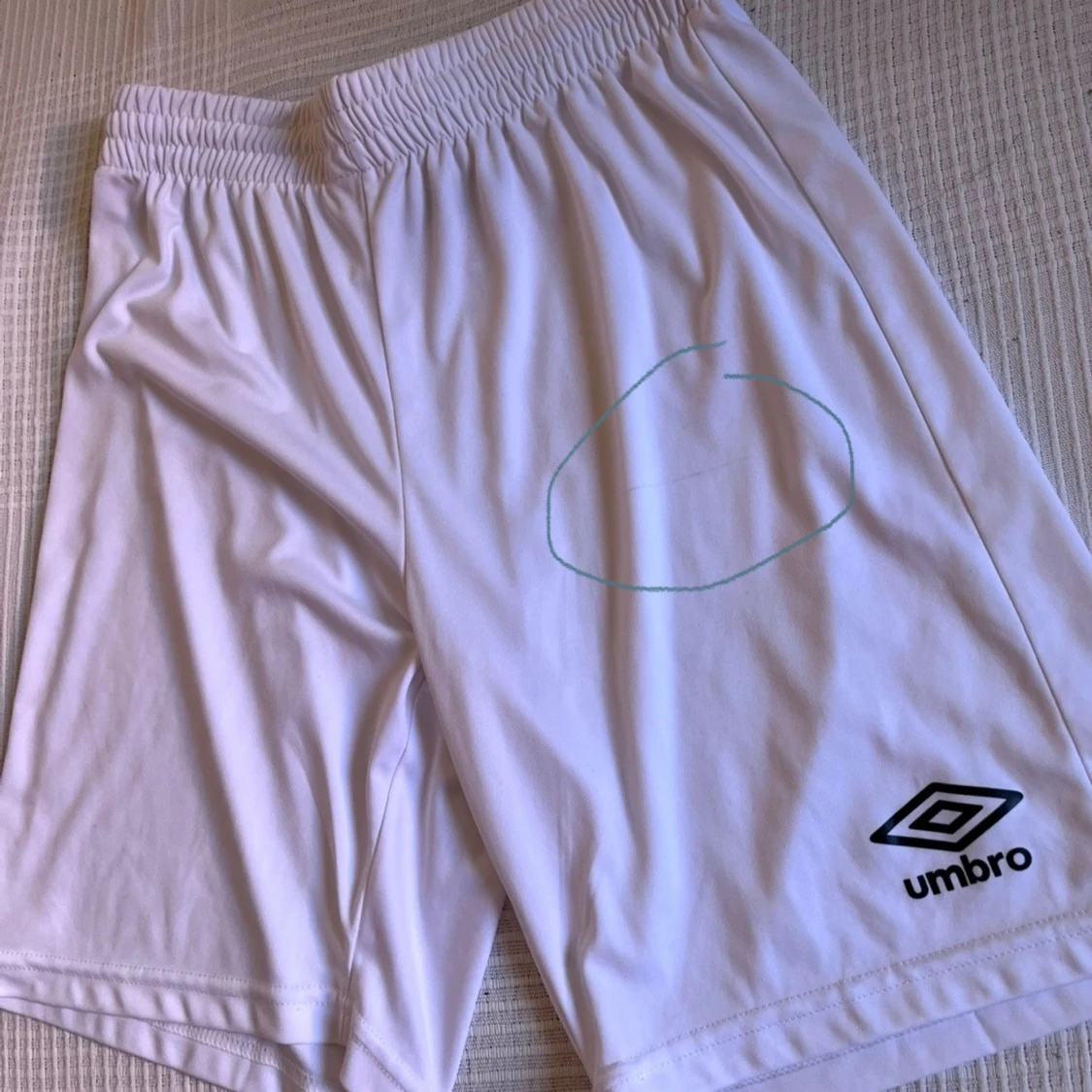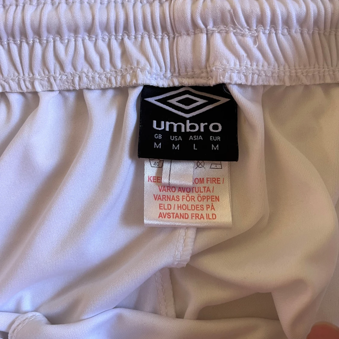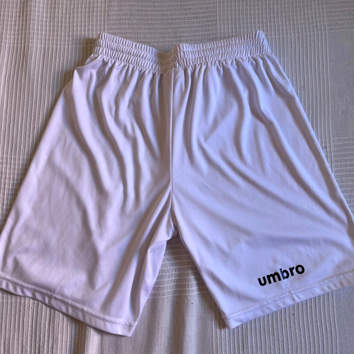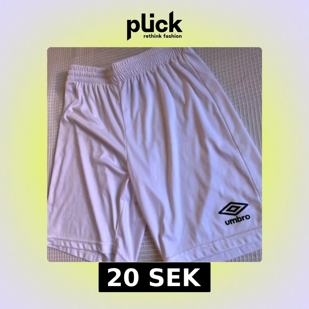 Säljer ett par vita Umbro shorts i storlek M, det finns en liten fläck som syns på bild 5 som försvinner vid tvätt. perfekta för sport eller chill. De har elastisk midja och är gjorda i 100% polyester för skön och lätt känsla. Klassisk design med Umbro-logga på benet. Passar dig som gillar enkel och sportig stil.